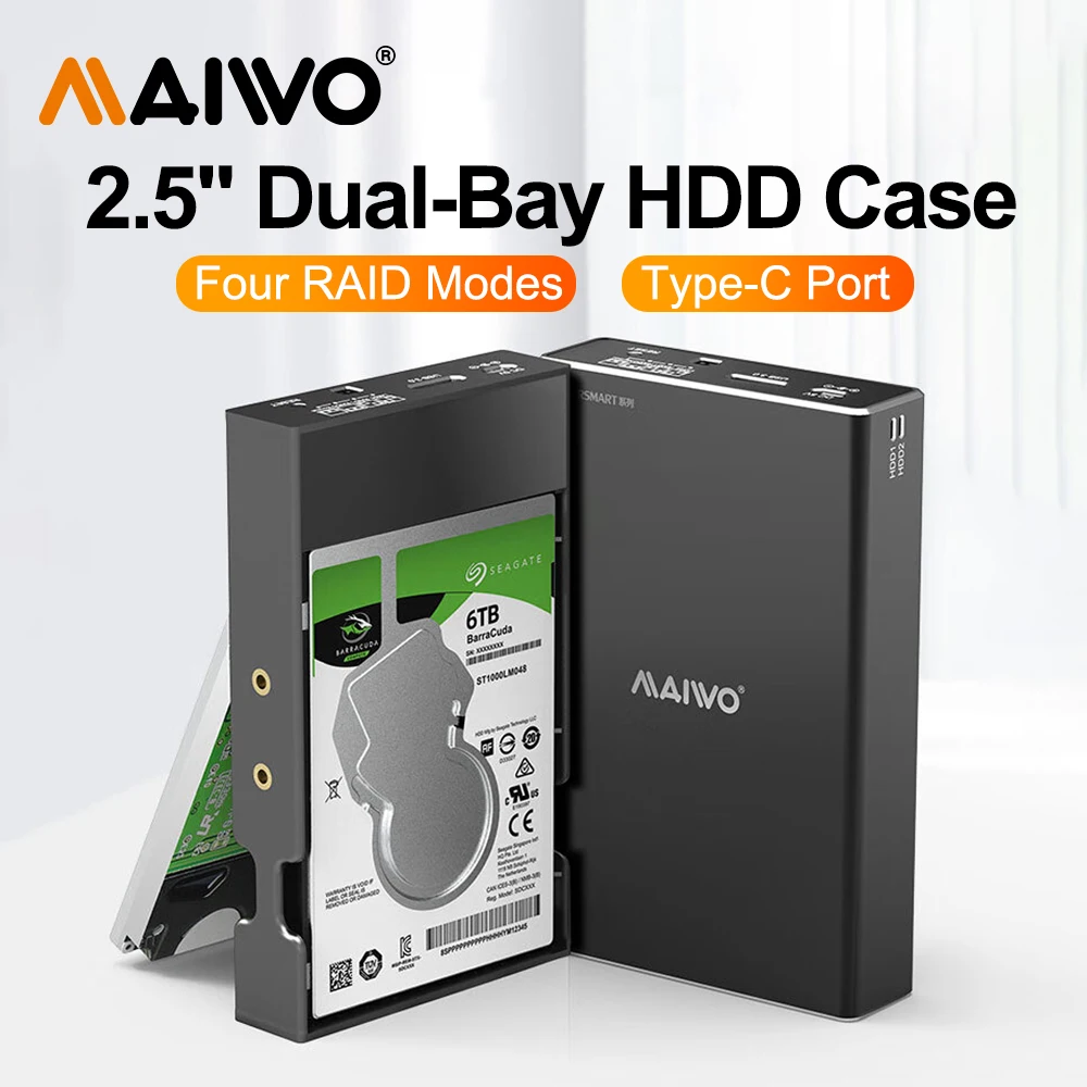 Comprar Caja de disco duro móvil MAIWO, conjunto de discos RAID, doble bahía, puerto serie mecánico de estado sólido de 2,5 pulgadas, caja externa con cubierta protectora