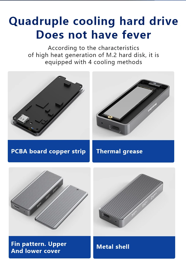 1.Admite clave M e interfaz, cuatro tamaños diferentes de discos duros NVMe