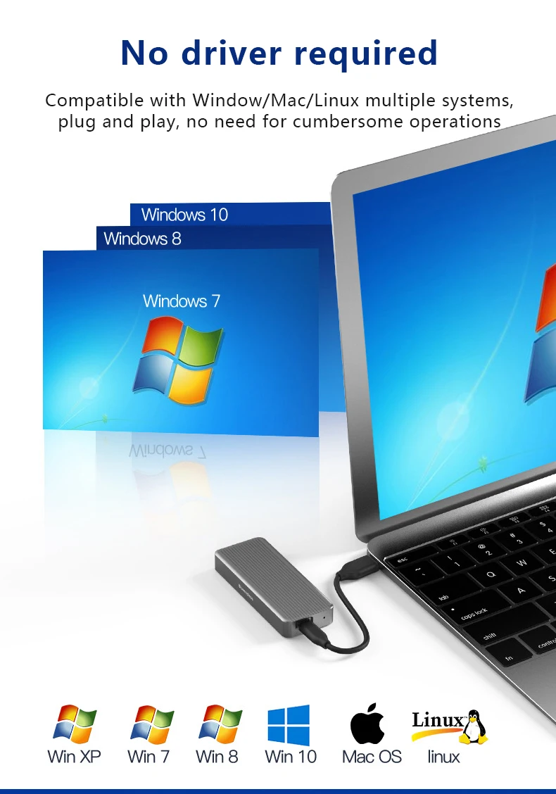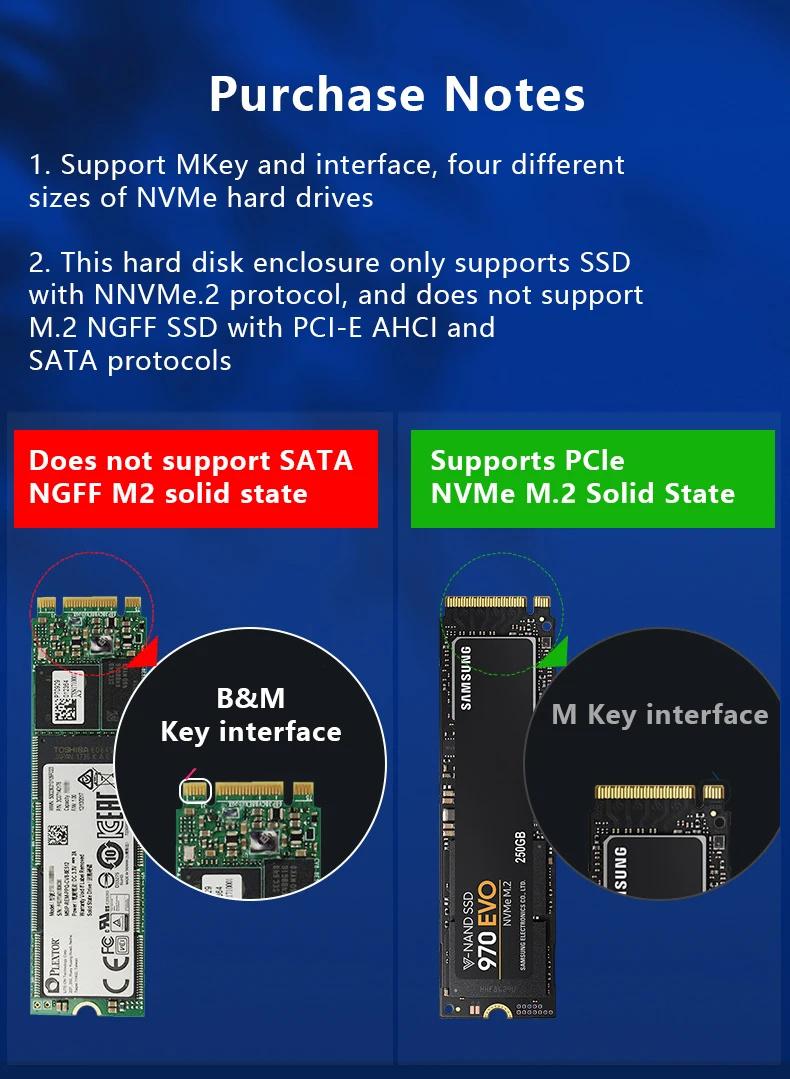 2.Esta carcasa de disco duro solo admite SSD con protocolo NNVMe.2 y no admite SSD M.2 NGFF con protocolos PCI-E AHCI y SATA.