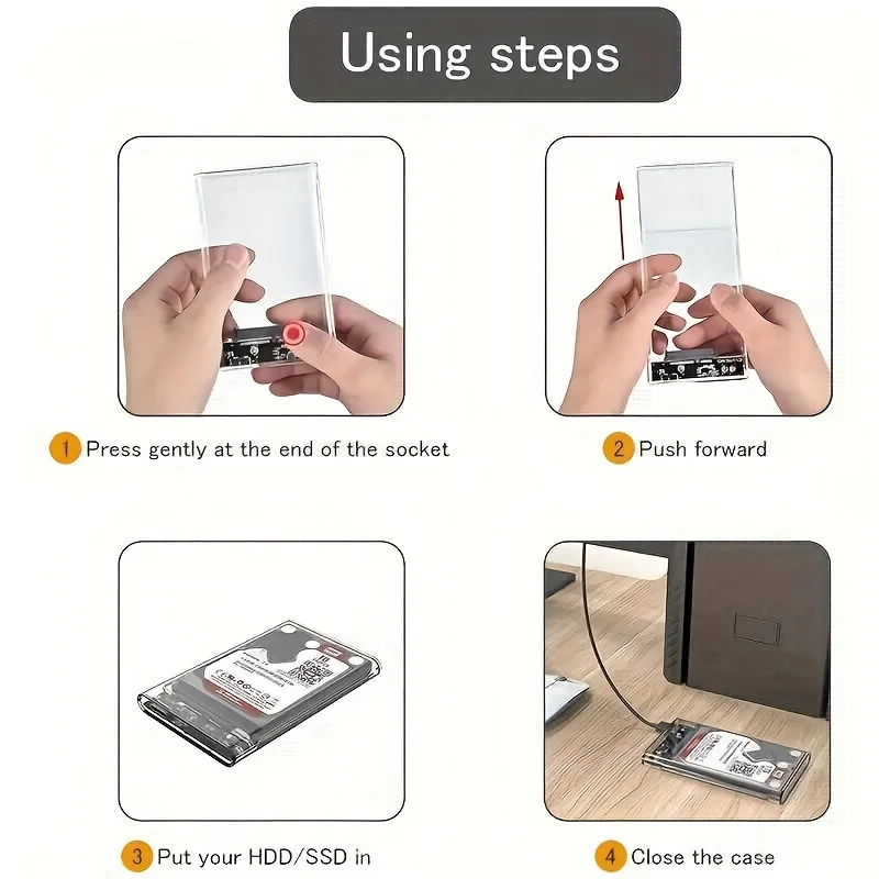 Caja de disco duro portátil transparente, USB3.0 de 2,5 pulgadas, lectura externa, escritorio, portátil, Sata, SSD mecánico, estado sólido