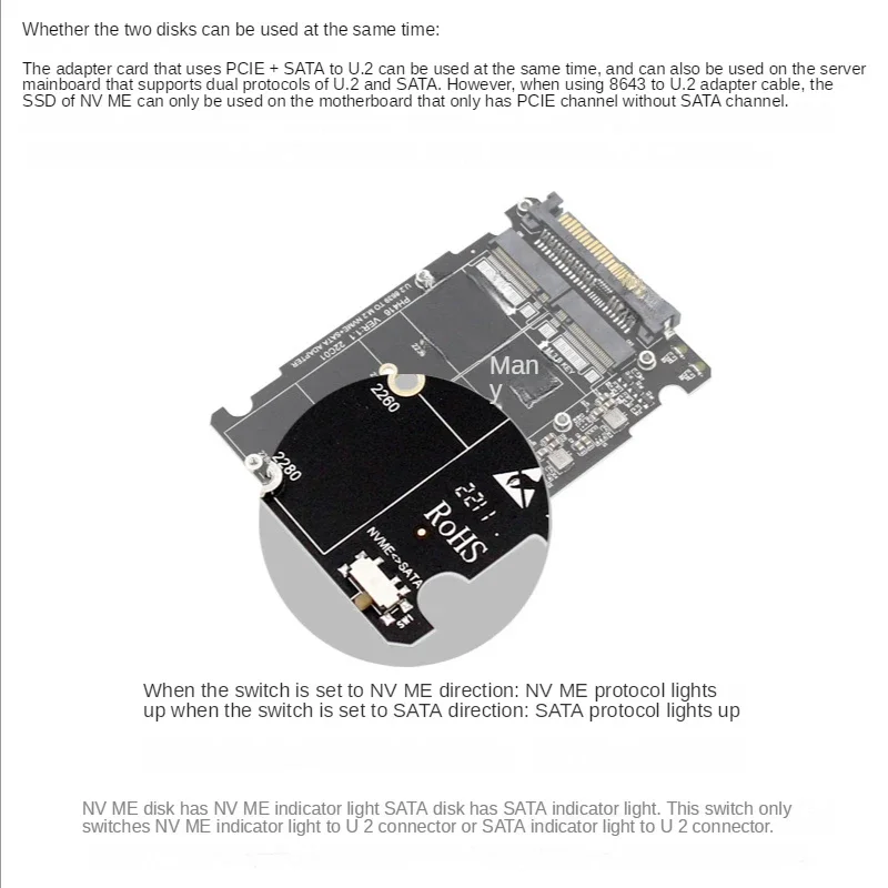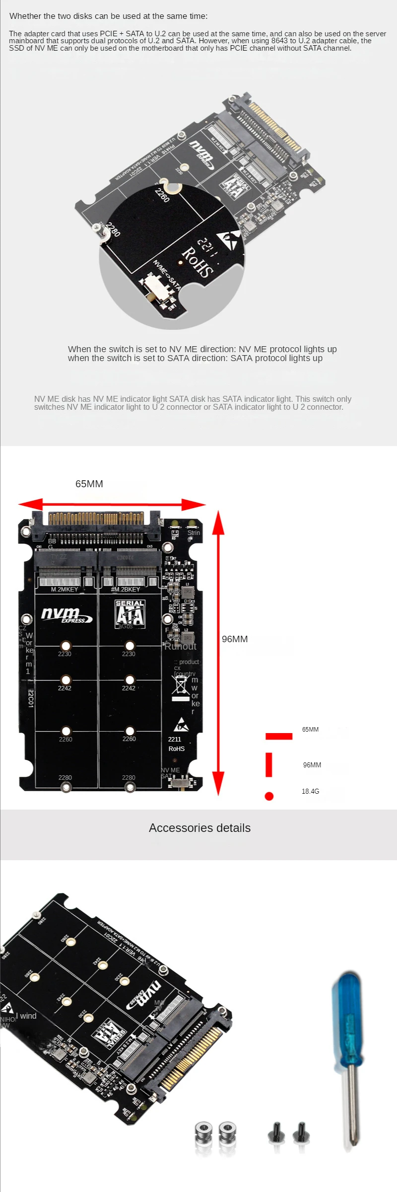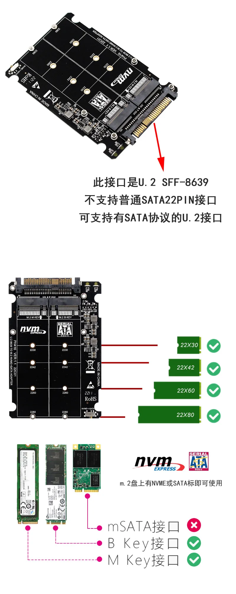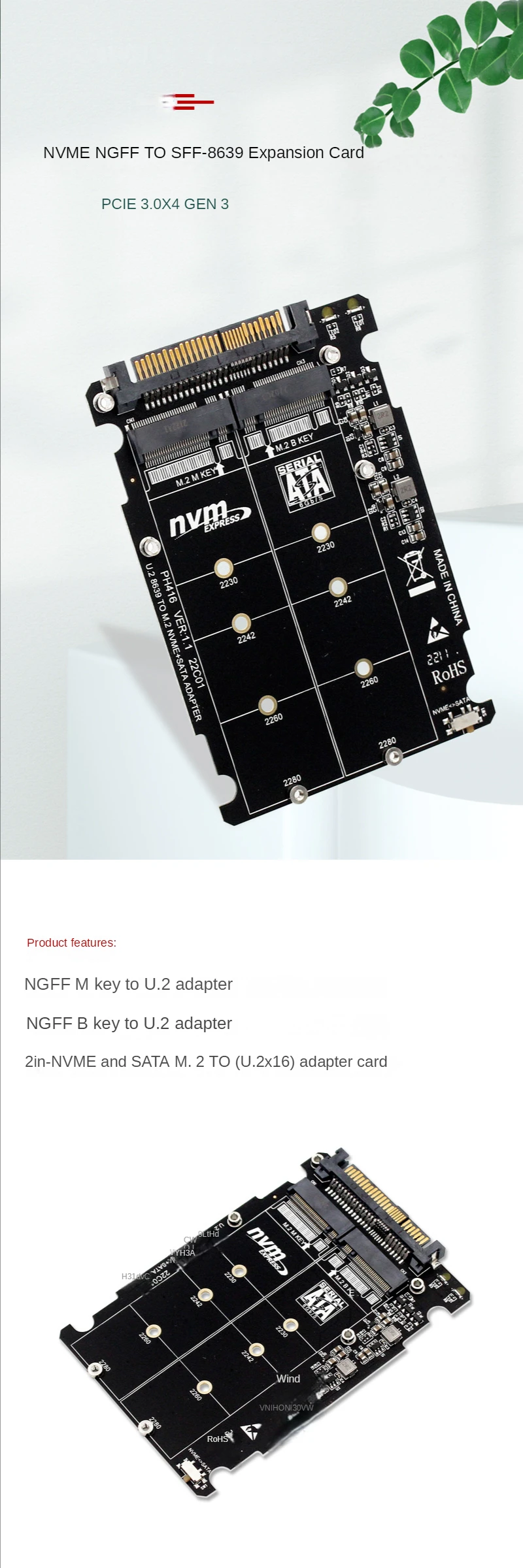 Comprar Caja de disco duro SSD de 2,5 pulgadas, tarjeta adaptadora de expansión a SFF-8639, U.2 SFF8639, M.2 NVMe PCIe 4,0 X4 SATA 6Gbs NVMe NGFF