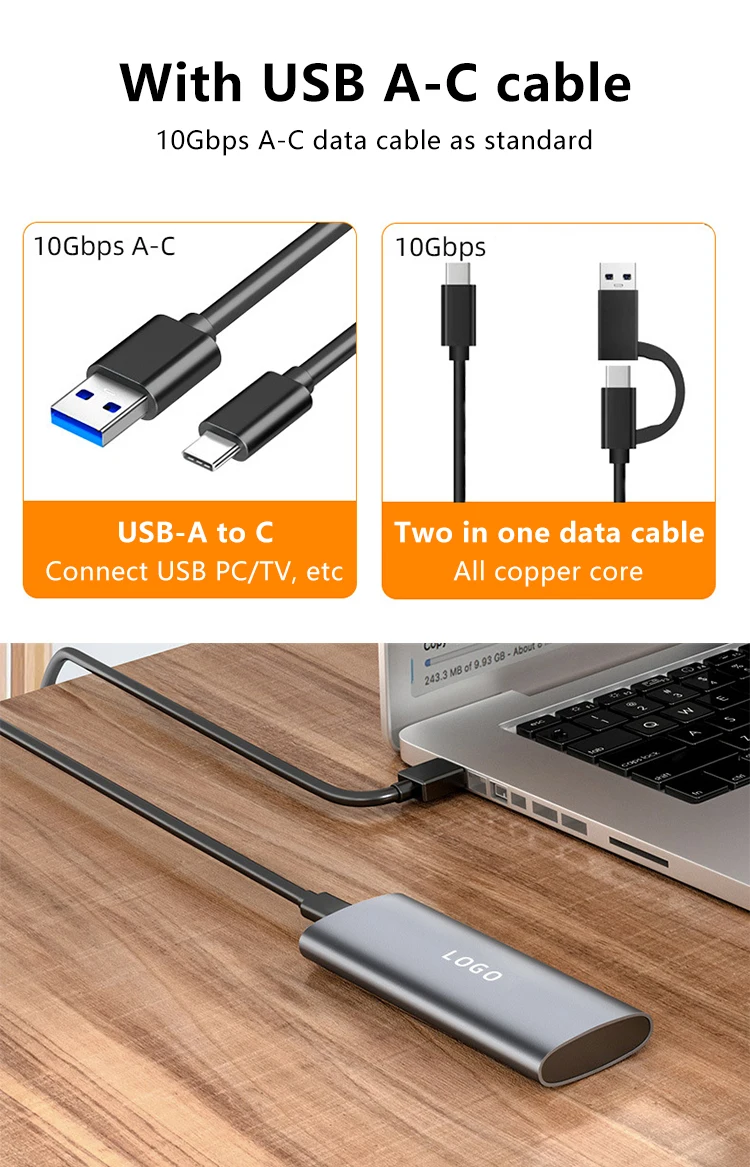 Admite SSD M Key (protocolo NVMe)/M&B Key (protocolo NVMe y SATA), incompatible con SSD B Key, cable tipo c a USB 3.0.