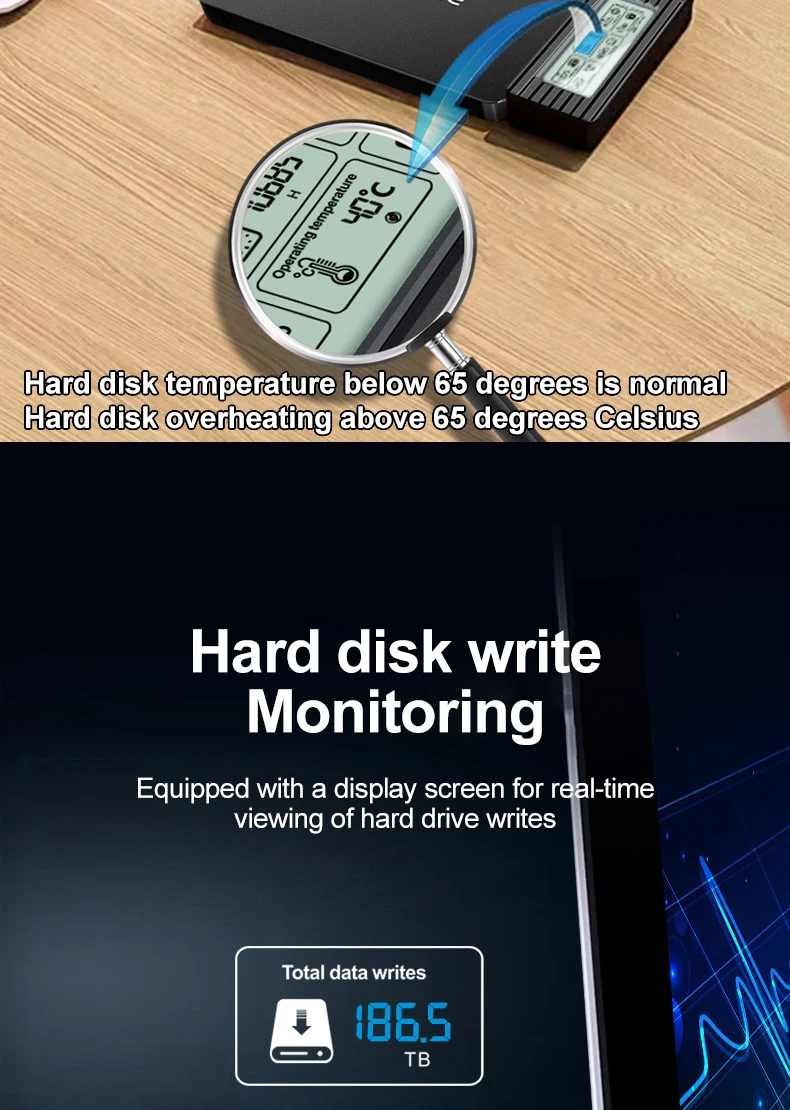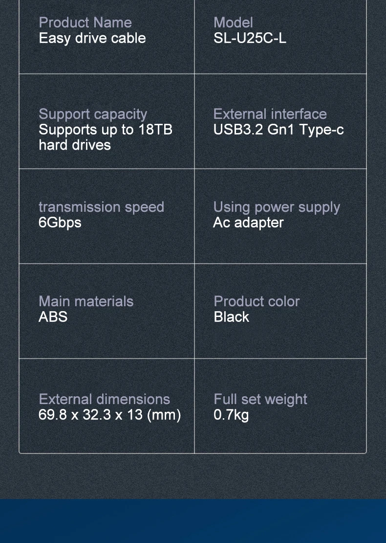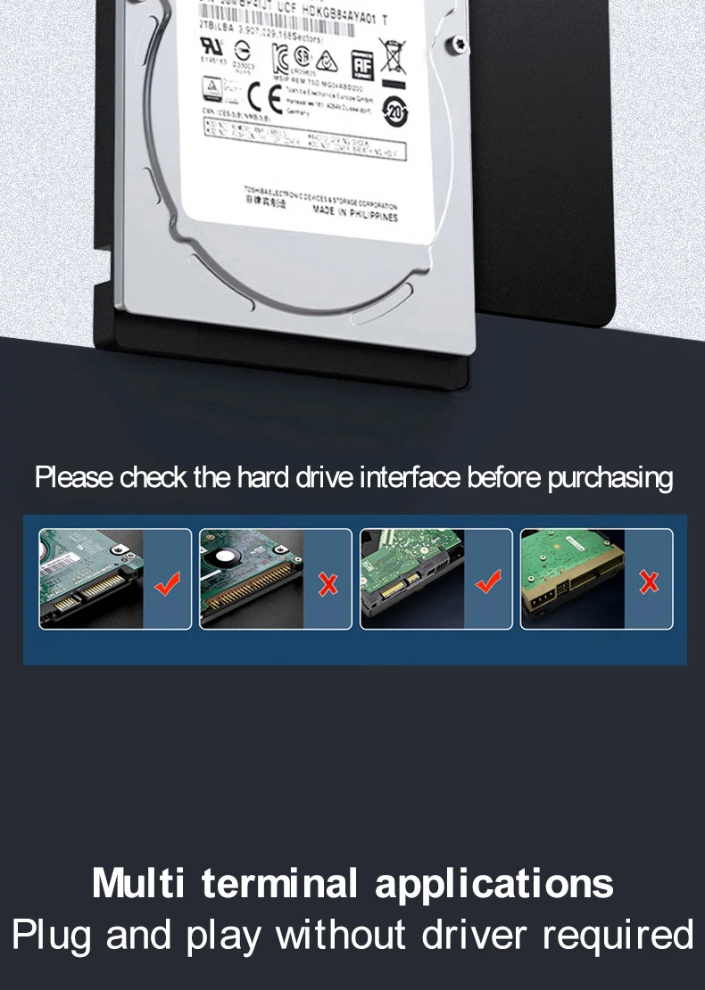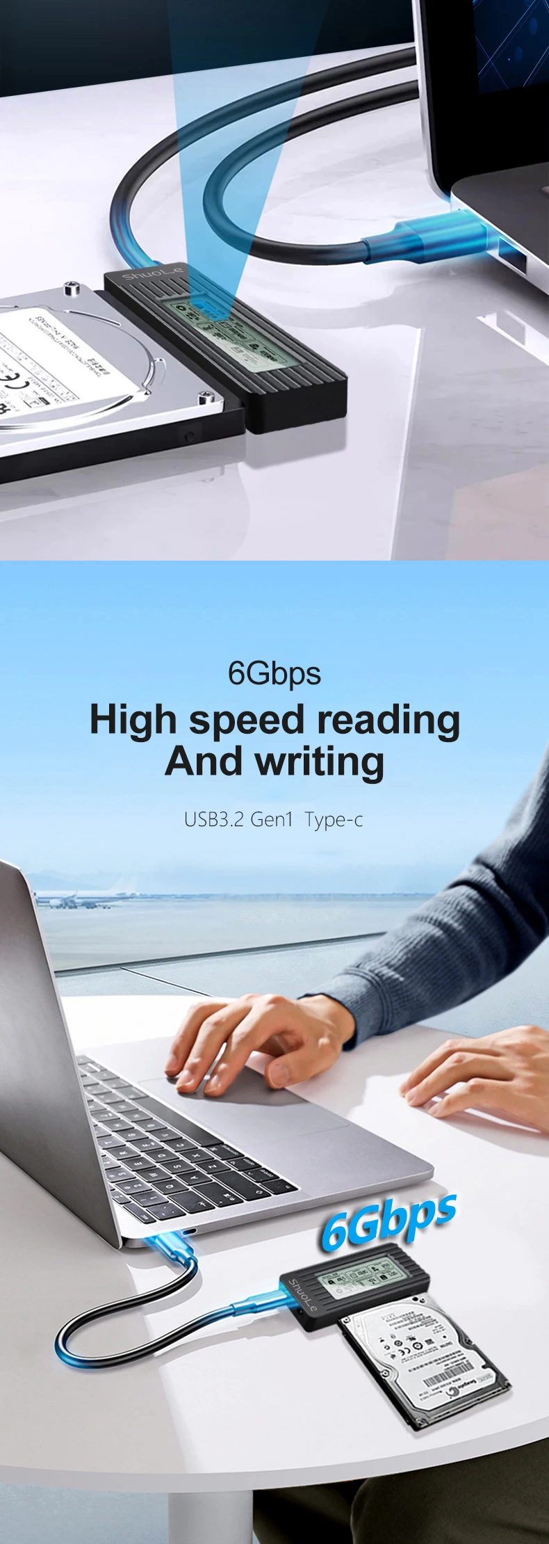 Caja de disco duro UTHAI USB 3,1, adaptador de disco duro de 2,5/3,5 pulgadas, pantalla Digital inteligente, Cable de unidad fácil con fuente de alimentación