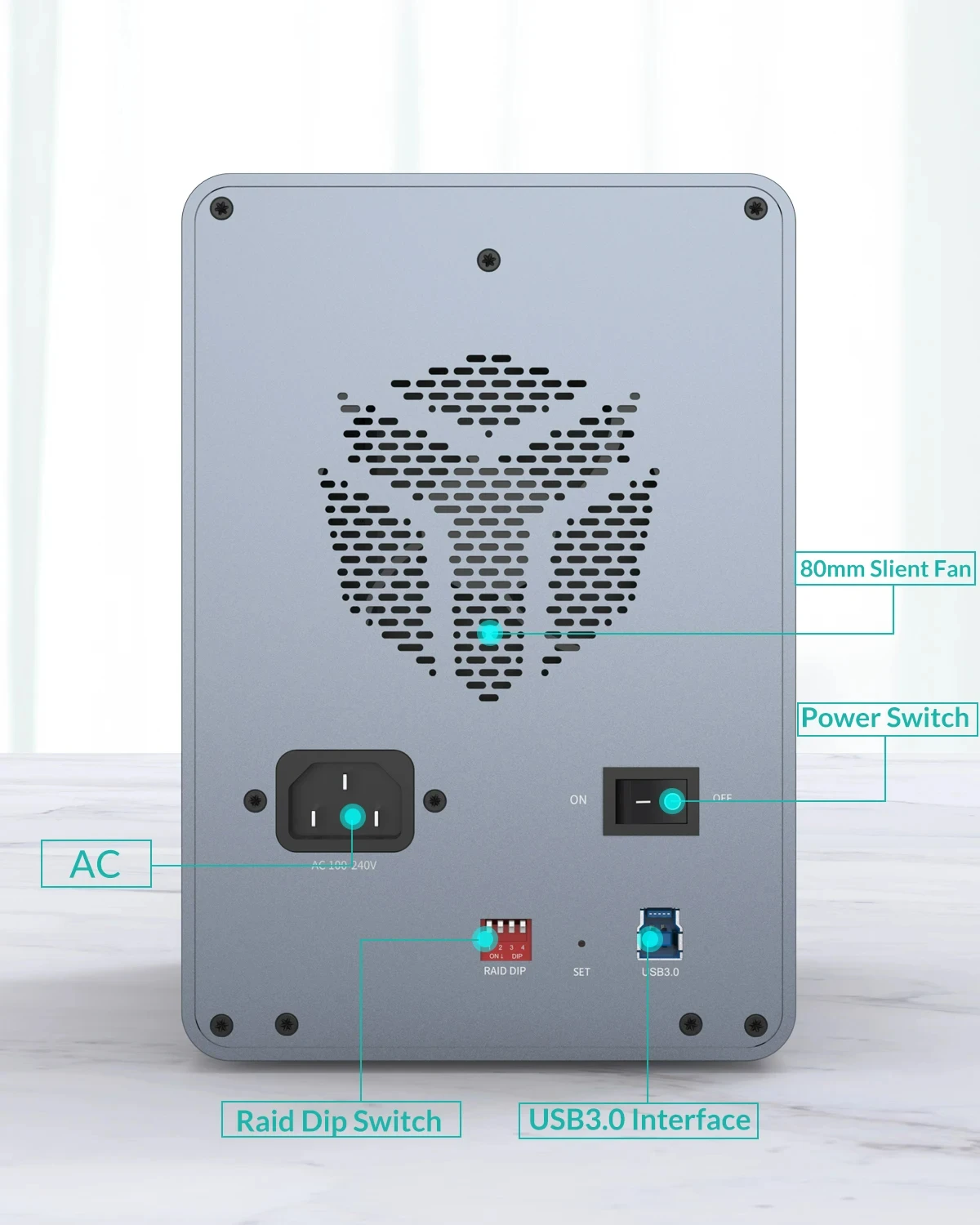 La carcasa del disco duro USB C Yottamaster está hecha completamente de aluminio.No solo proporciona una estructura estable y sólida durante el funcionamiento, sino que también garantiza un uso a largo plazo.Además de un ventilador silencioso de 80 mm, orificios de enfriamiento de meteoritos en el panel delantero y trasero y una carcasa de aluminio ultrarrápida para mantener sus viajes frescos y seguros durante largas horas de funcionamiento.