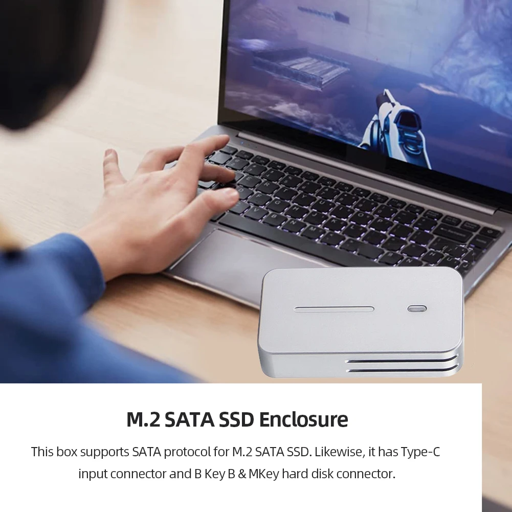 3. Compatibilidad M.2 SATA SSD:Disfrute de la flexibilidad de nuestra carcasa SSD externa, que admite unidades de estado sólido M.2 SATA. Con su interfaz de entrada tipo C y la interfaz B Key B & M Key SSD, proporciona una amplia gama de opciones de conectividad para una transferencia de datos sin problemas.