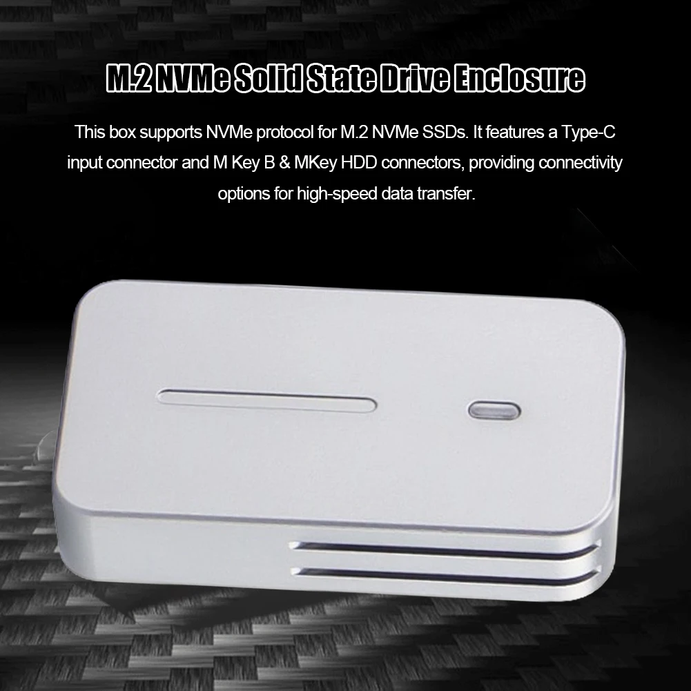 2. Compatibilidad M.2 NVMe SSD: Experimente el poder de la tecnología NVMe Con nuestra caja SSD de metal m.2 NVMe. Ofrece una compatibilidad perfecta específicamente para unidades de estado sólido M.2 NVMe. Equipado con una interfaz de entrada tipo C y una interfaz M Key B & M Key SSD, garantiza una transferencia de datos rápida y fiable.