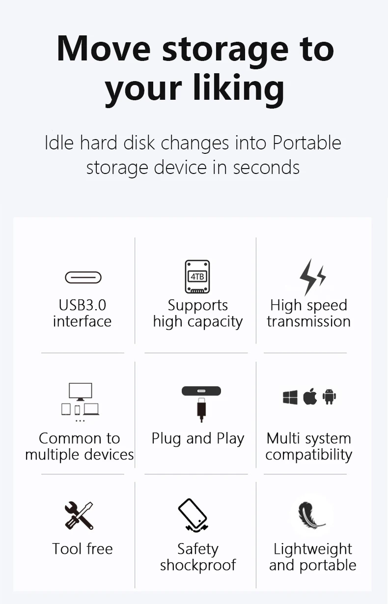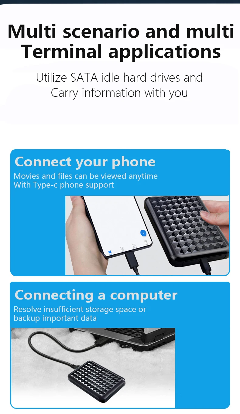 Nombre del producto: Caja de dispositivo de almacenamiento portátil SATA de 2,5C pulgadas