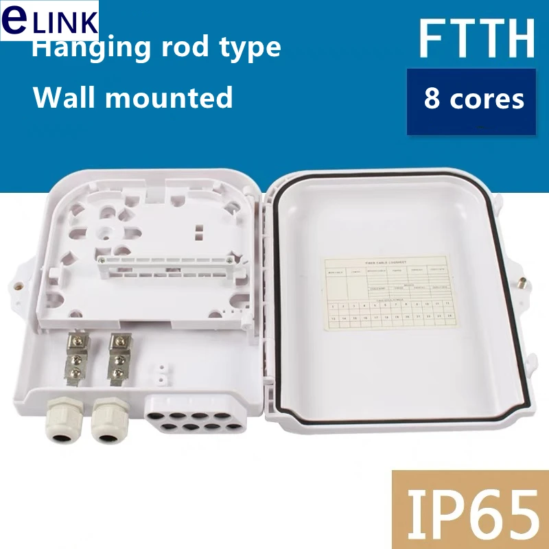 Comprar Caja de distribución FDB 2 uds 8 núcleos IP65 ABS blanco impermeable al aire libre 240*200*55mm caja de conexiones de fibra óptica FTTH 1*8 caja de fusión