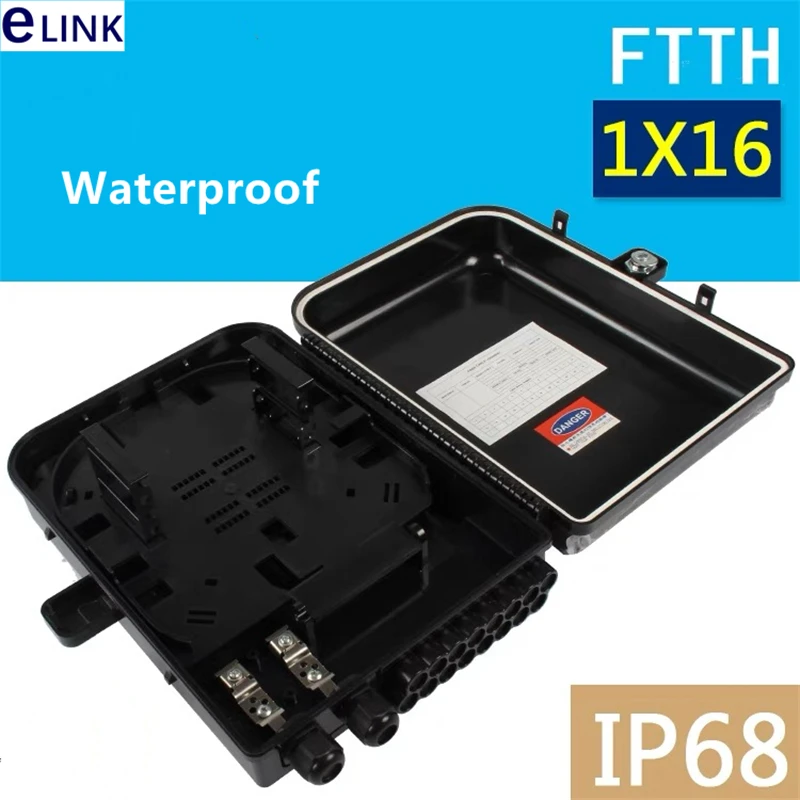 Comprar Caja de distribución FTTH de 16 núcleos, 310x250x110mm, PC + ABS, caja de conexiones montada en la pared, impermeable 1x16 recinto eLink