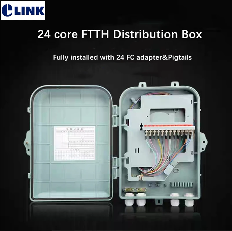 Caja de distribución FTTH de 24 núcleos completamente con adaptador FC UPC APC y pigtails SM 360*260*95 mm caja de conexiones de fibra óptica