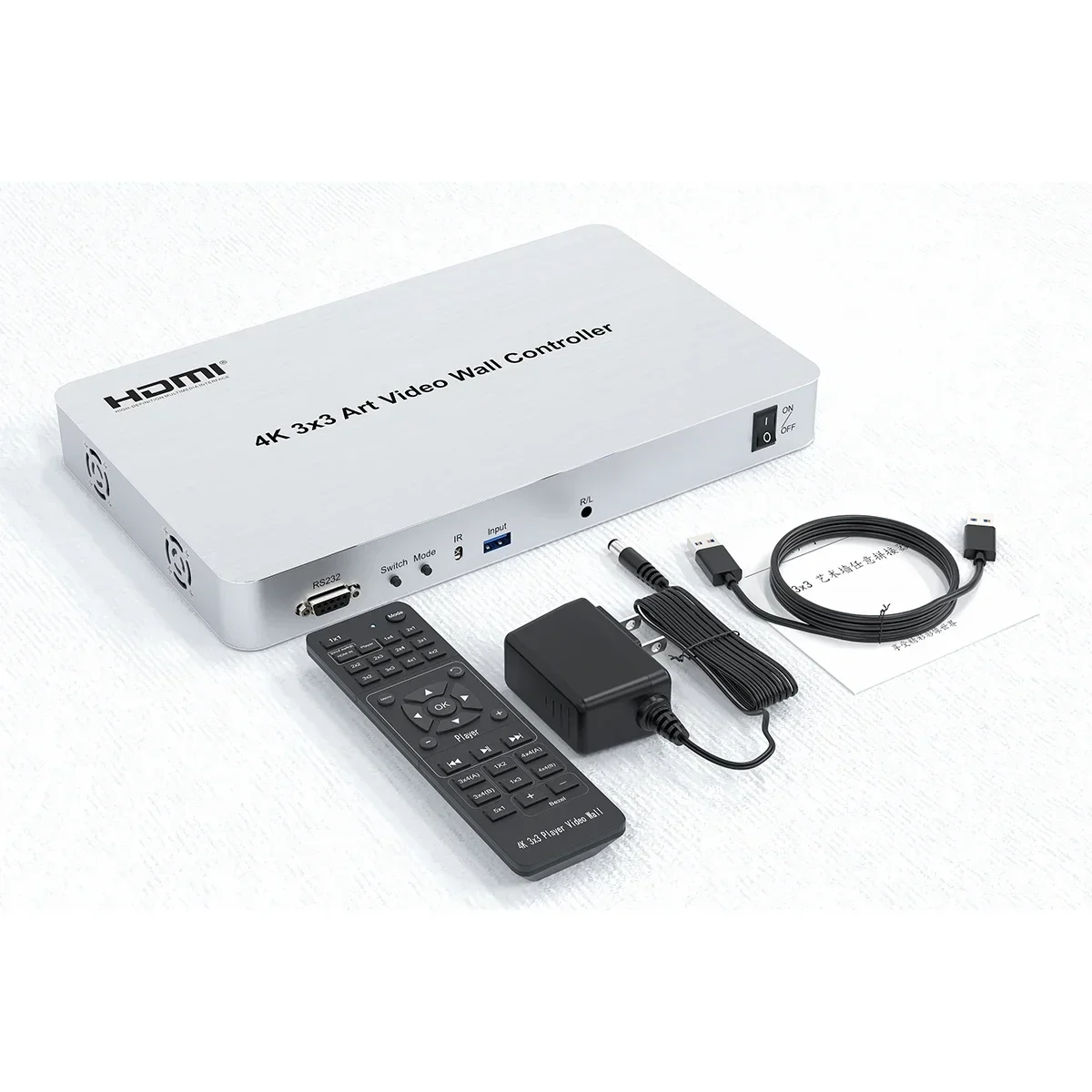 Este controlador de pared de vídeo artístico 4K 3X3 admite entrada HDMI o USB3.0. A través del puerto USB 3,0 de vídeo