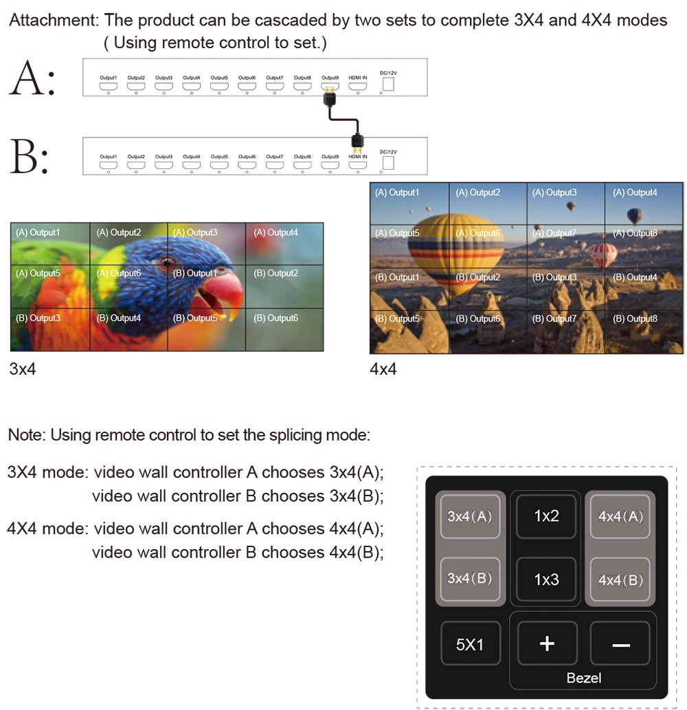 * Admite conexión en cascada de varias unidades para admitir Modos 3x4 y 4x4