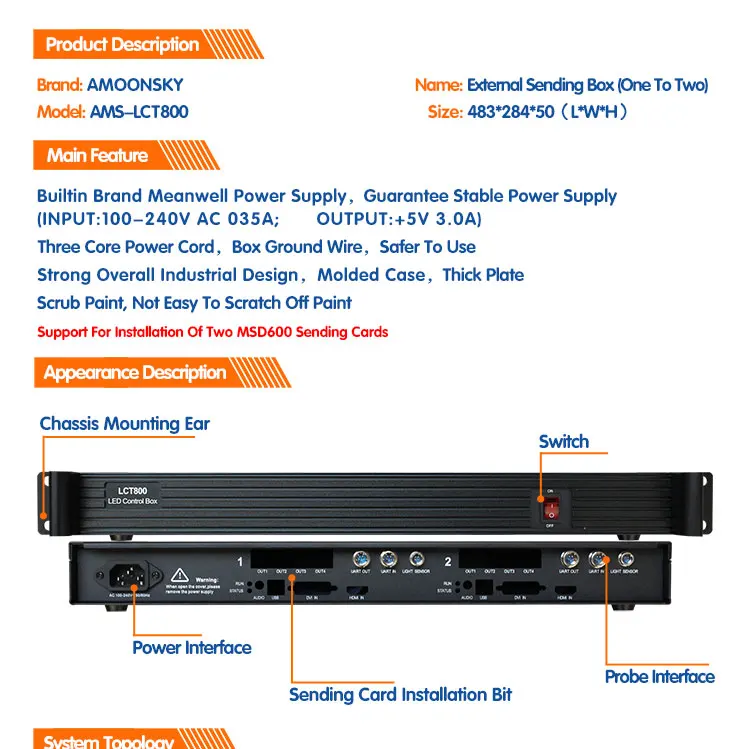 Comprar Caja de envío de pared de vídeo con pantalla LED LCT800, incluye fuente de alimentación Meanwell, soporte 2 piezas Novastar MSD600, tarjeta de envío