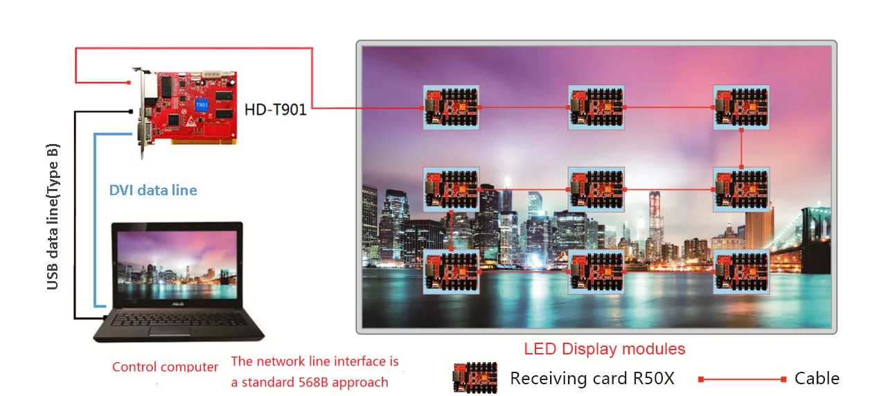 Comprar Caja de envío síncrona LED a todo Color, HD-T901B con tarjeta de envío de HD-T901, funciona con HD-R500, HD-R501, HD-R501S, HD-R5018
