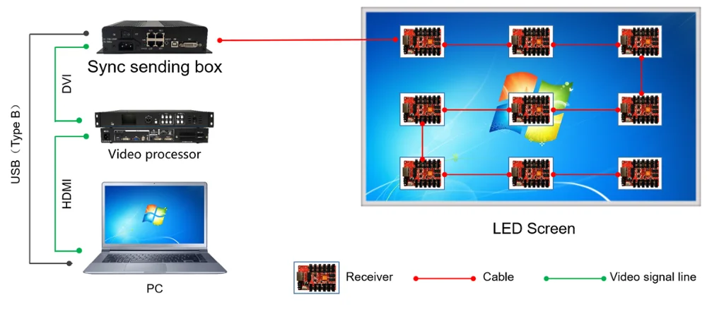 Comprar Caja de envío síncrona LED a todo Color, HD-T901B con tarjeta de envío de HD-T901, funciona con HD-R500, HD-R501, HD-R501S, HD-R5018