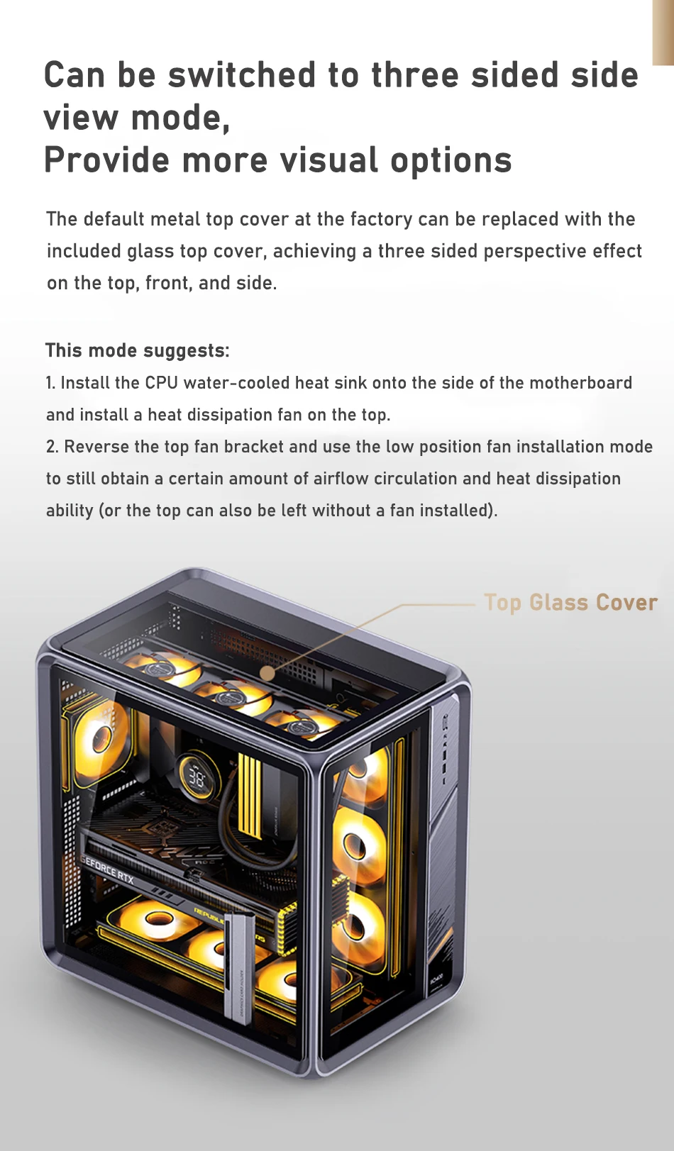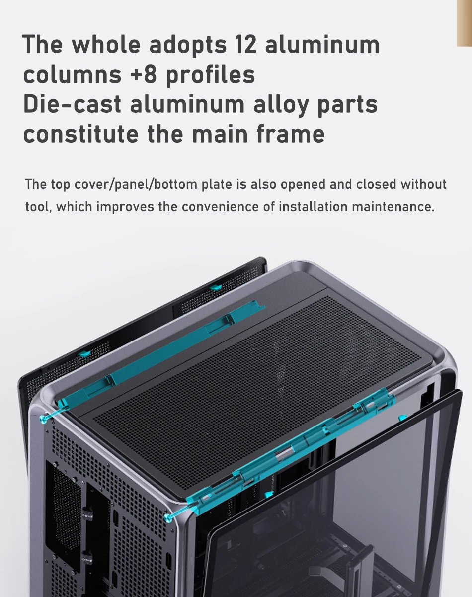 Soporte de refrigeración por agua: fila fría con especificación superior de 240 mm/280 mm/360 mm; Lado: fila fría con especificación de 360 mm; Parte inferior: fila fría con especificación de 240 mm/280 mm/360 mm