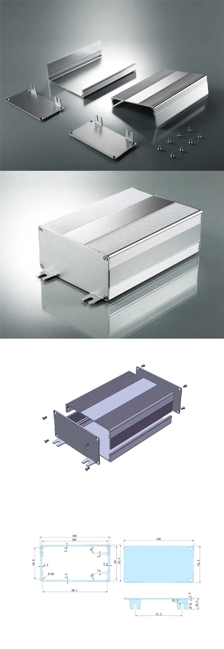 Caja externa de aluminio para HDD SATA/SSD, caja de caja eléctrica/caja de panel eléctrico, 106x54-150mm (WxHxL)