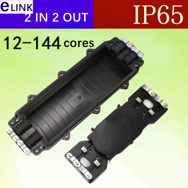Comprar Caja de fibra óptica 12/24/48/72/96/120/144 núcleos 2 EN 2 salidas caja de empalme de fibra óptica de tipo Horizontal caja de bandeja de fusión