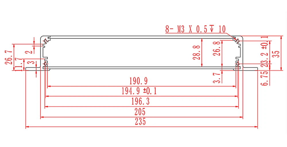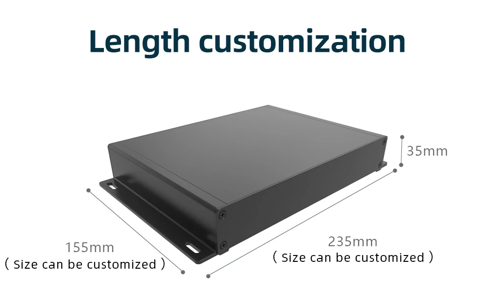 Adopta perfil de aluminio de alta calidad, paneles laterales extruidos, longitud y ancho disponibles, tamaño personalizado, placa frontal de maquinaria CNC, ampliamente adecuada para varios campos de carcasas.Características: