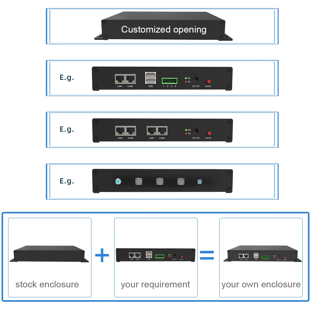 1. Paneles de ranura 2. Personalización de tamaño completo 3. Más opciones de color para anodizado 4. Personalización de recortes 5. Grosor de la personalización de la placa frontalEspecificaciones: