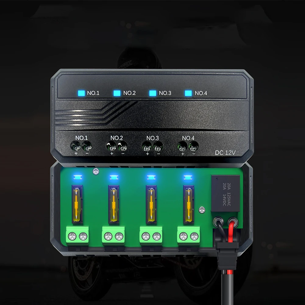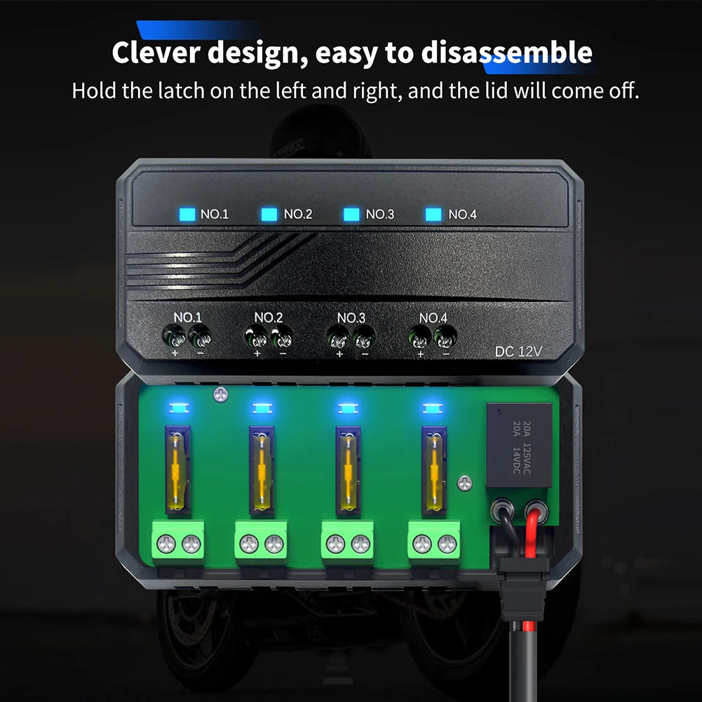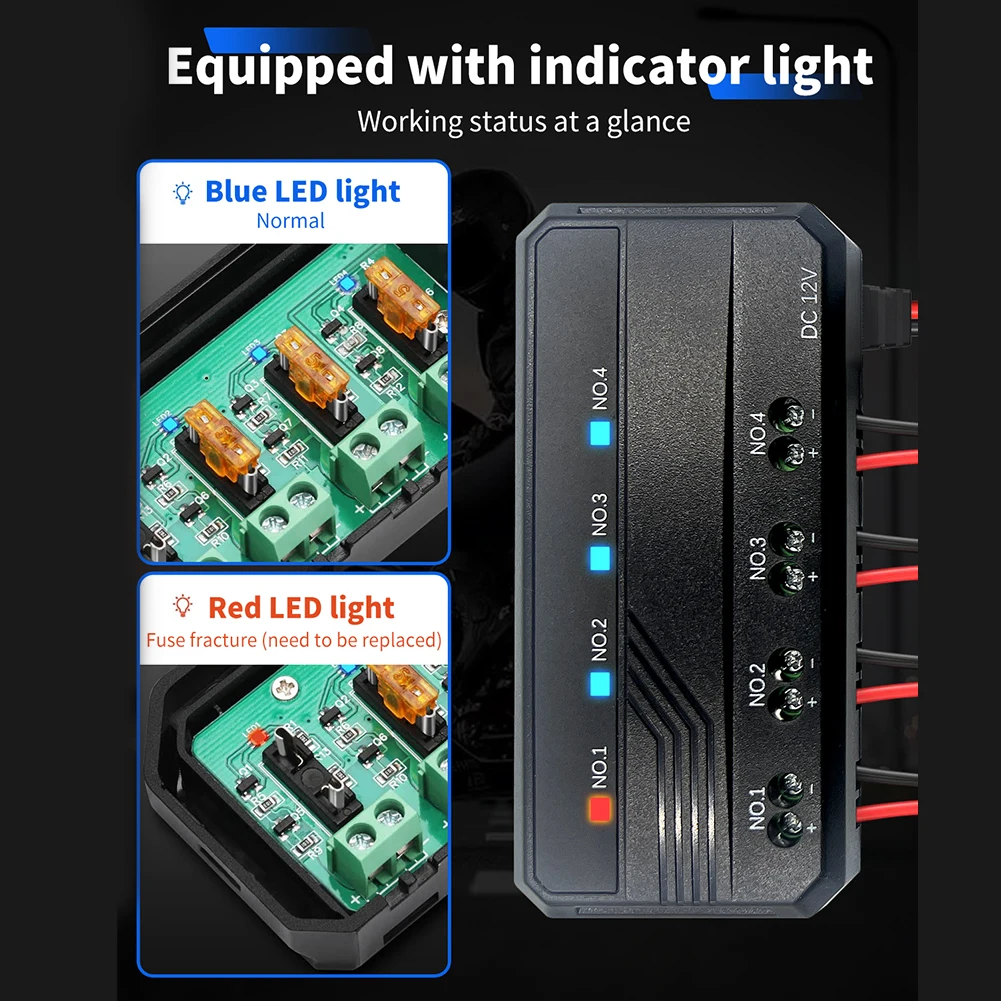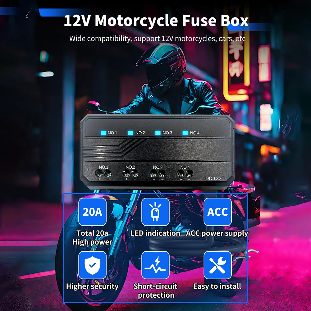 Caja de fusibles para motocicleta de 12V, protección de 4 circuitos, 20A, soporte Universal para bloque de fusibles automotriz, indicador LED, soporte para cuchilla de fusibles, accesorios para motocicleta y coche