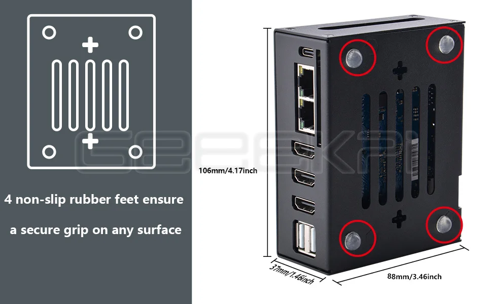 Diseño elegante:Esta funda protectora de metal agrega un toque de elegancia a su Orange Pi 5 Plus, mejorando el atractivo estético de su configuración SBC.