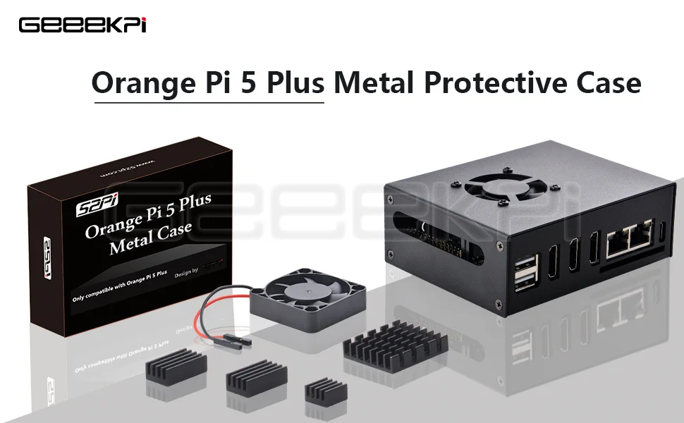 Material premium:Fabricada con metal de alta calidad, esta funda protectora proporciona una durabilidad y protección excepcionales contra daños físicos, lo que garantiza que su Orange Pi 5 Plus permanezca seguro y funcional.