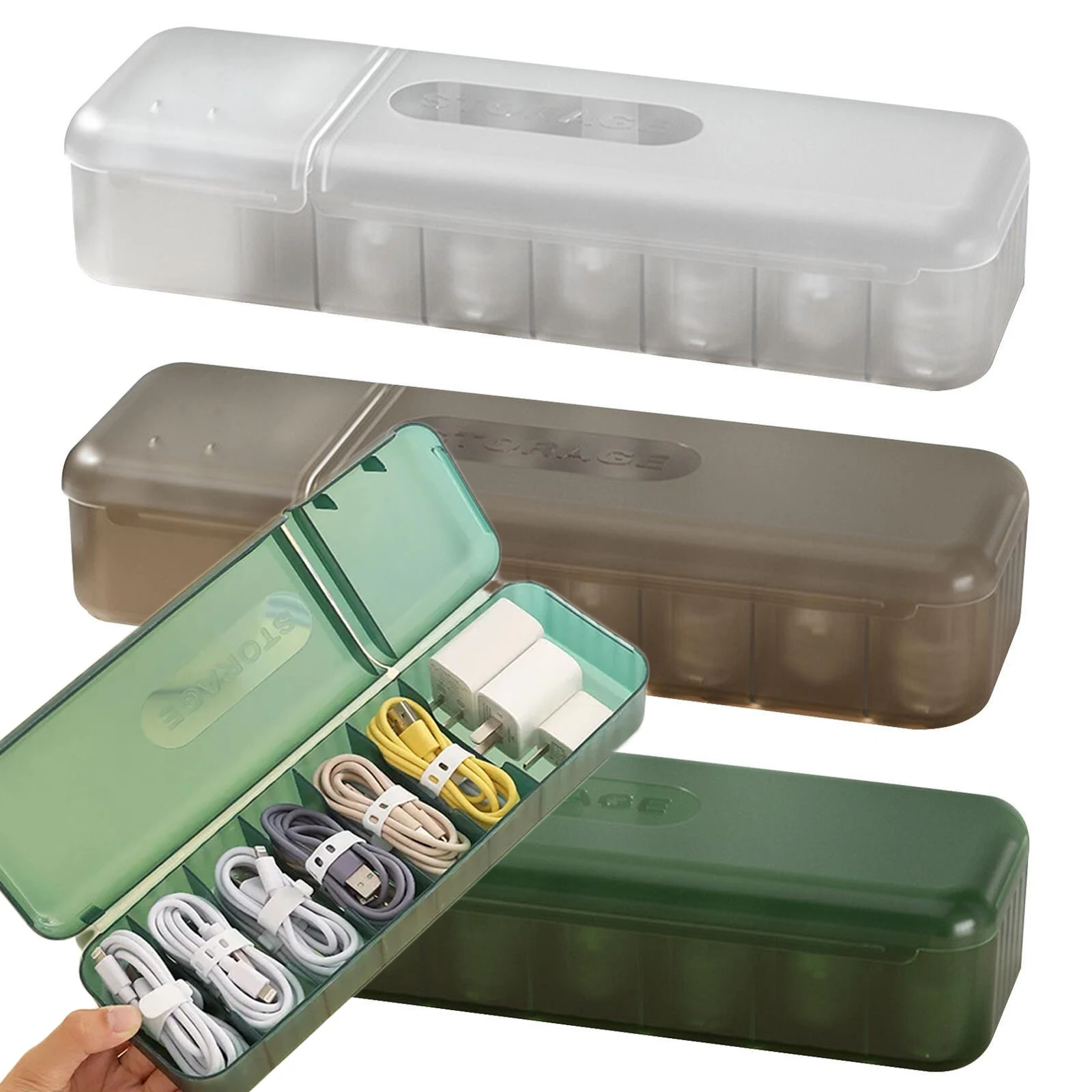 Caja de gestión de cables de plástico, organizador de cables de alimentación con 7 compartimentos, estuche de almacenamiento electrónico para uso doméstico y de oficina