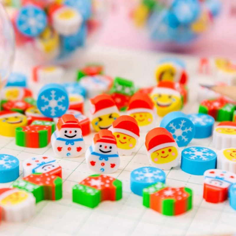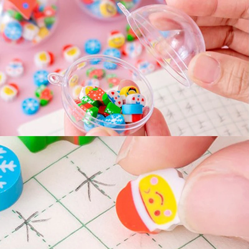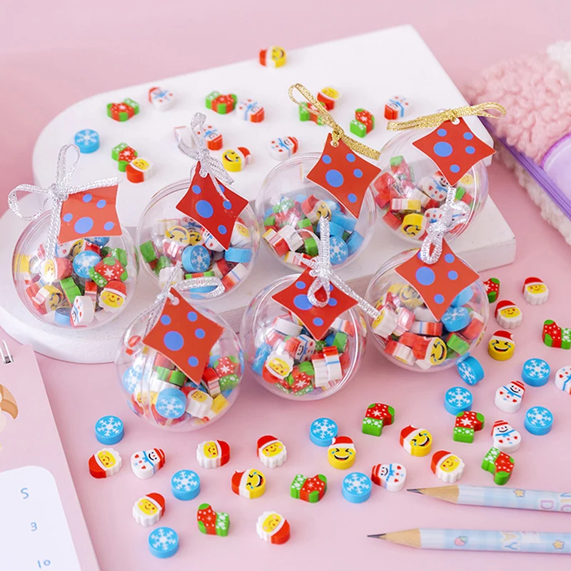 Comprar Caja de gomas de borrar con forma de bola de Navidad, miniborradores creativos de muñeco de nieve, regalos de Navidad para estudiantes, papelería Kawaii, suministros escolares, 1 caja