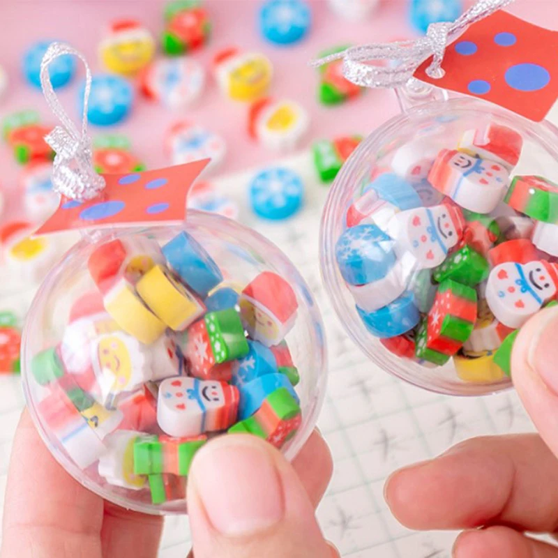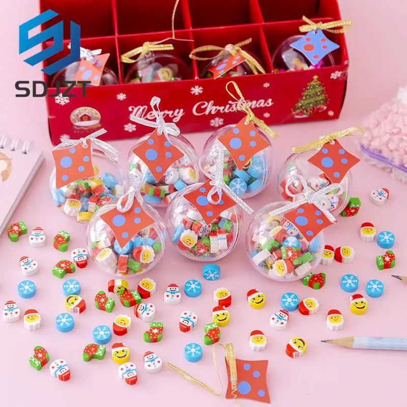 Comprar Caja de gomas de borrar con forma de bola de Navidad, miniborradores creativos de muñeco de nieve, regalos de Navidad para estudiantes, papelería Kawaii, suministros escolares, 1 caja