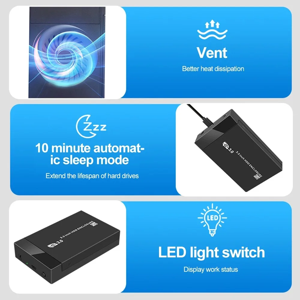 1) Ideal para aprovechar su disco duro SSD y HDD de 3,5 "/2,5" como unidad USB externa, le brindará mayor comodidad de uso y versatilidad de almacenamiento de datos digitales.