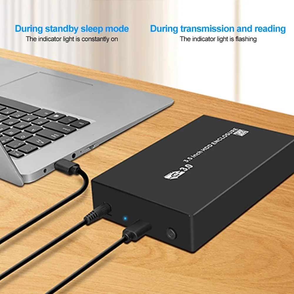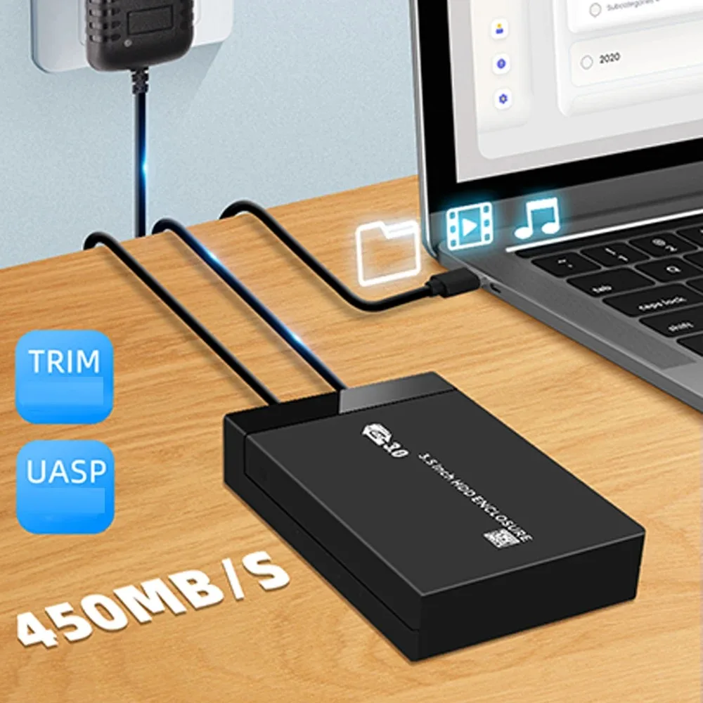 2)El gabinete viene con el USB 3.Conexión 0 mejorada con el protocolo UASP y aumenta significativamente la velocidad de transferencia de datos, brindando hasta un 70% más rápido que el USB 3 convencional.0, haga una copia de seguridad rápida de sus fotos, videos, películas y juegos desde su computadora a la unidad SATA para almacenamiento.