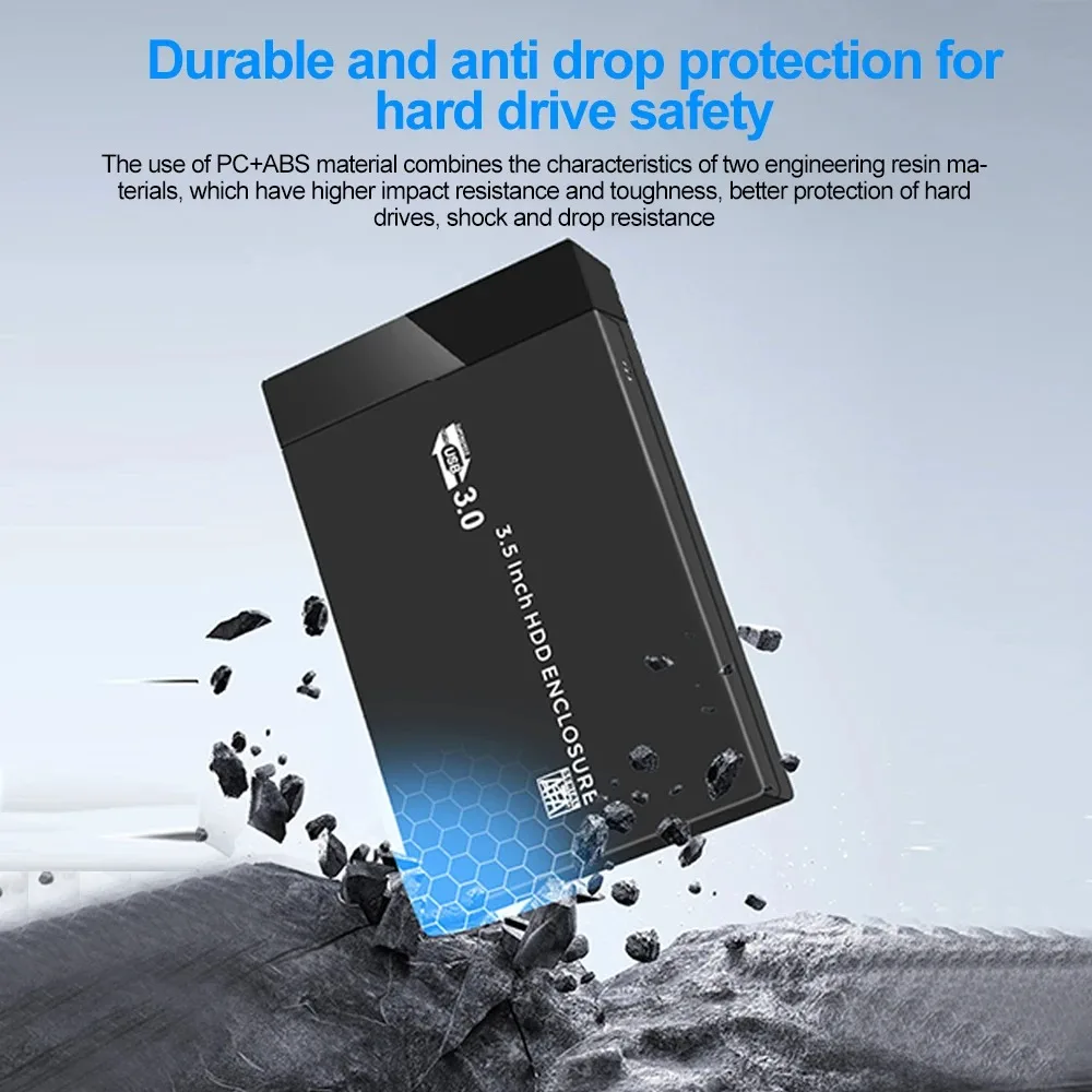 3) La carcasa para disco duro externo de construcción sólida, construida con material ABS de primera calidad y una tira de goma suave que ofrece una protección integral para su unidad SATA contra rasguños y caídas, mantiene los datos valiosos en un lugar seguro.