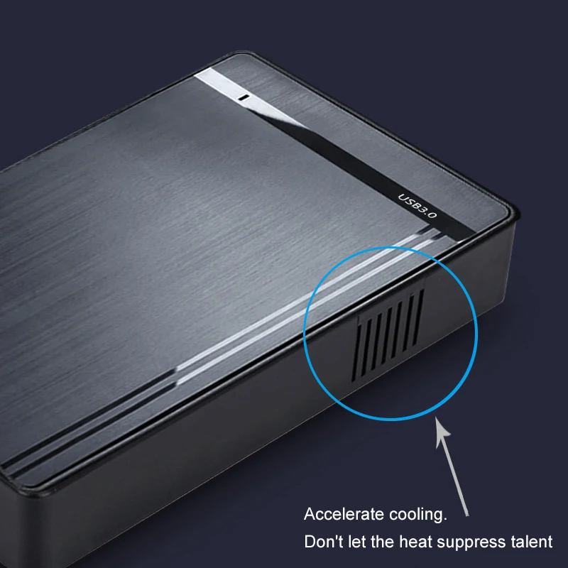 El chasis estaba fabricado de plástico y no de aluminio. El disco duro de 3.5 pulgadas instalado se calienta bastante; se debería añadir ventilación en la parte inferior del chasis y unos pies de goma también ayudarían.