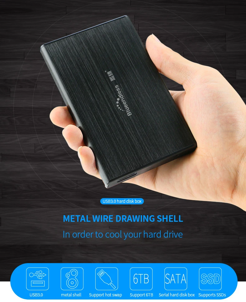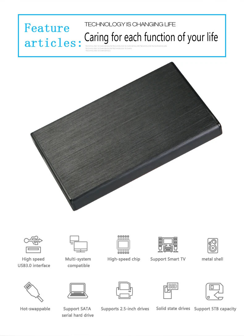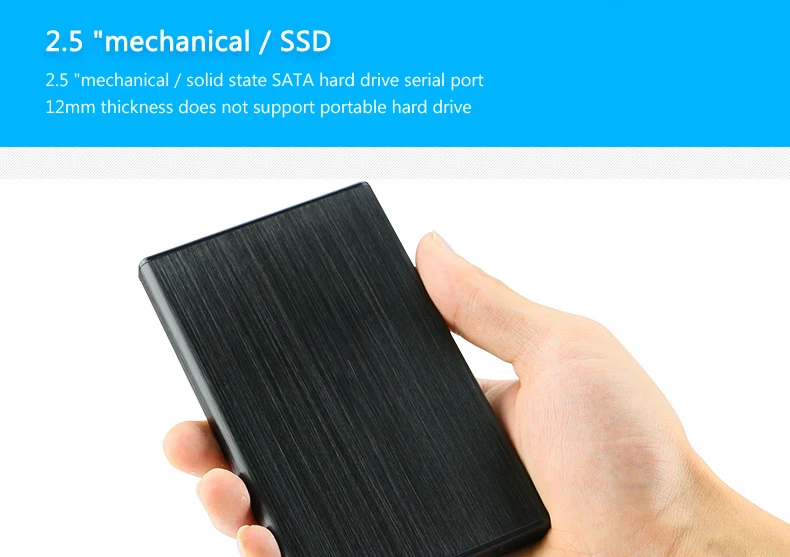SATA I,II,III USB 3,0 Metal SSD HDD Recinto Envío gratis 2,5 "Disco duro Caddy Box Detalle del producto 1. Nombre: carcasa HDD/carcasa HDD 2.Material : metal 3.Color: negro/rojo/plata/azul(Color aleatorio enviado sin previo aviso o mensaje) 4. Interfaz de transporte: USB3.0 micro-Mini 5. Tipo de transporte: HDD ,SSD 6. Soporte HDD: 2,5 ''SATA (7-9,5mm) 7. Velocidad de transporte: hasta 6Gbps 8.Plug and Play Sistema de apoyo Windows,Linux,MAC,OS,10.6.2 El paquete incluye 1. Funda HDD 2. Cable USB 3,0 3. Destornillador * 1 4. tornillos * 2 5. Manual de usuario Tenga en cuenta:Esta es solo una funda de disco duro y no contiene el disco duro.