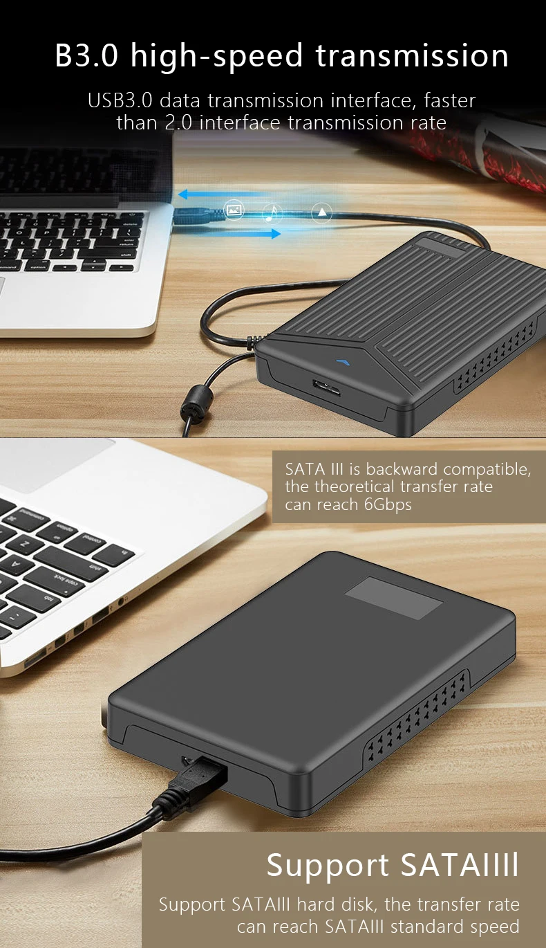 Comprar Caja HDD SATA USB 3,0-3,1 de 15mm y 2,5 pulgadas, SSD, portátil, escritorio móvil/portátil, puede usar caja de disco duro, compatible con almacenamiento de 8TB