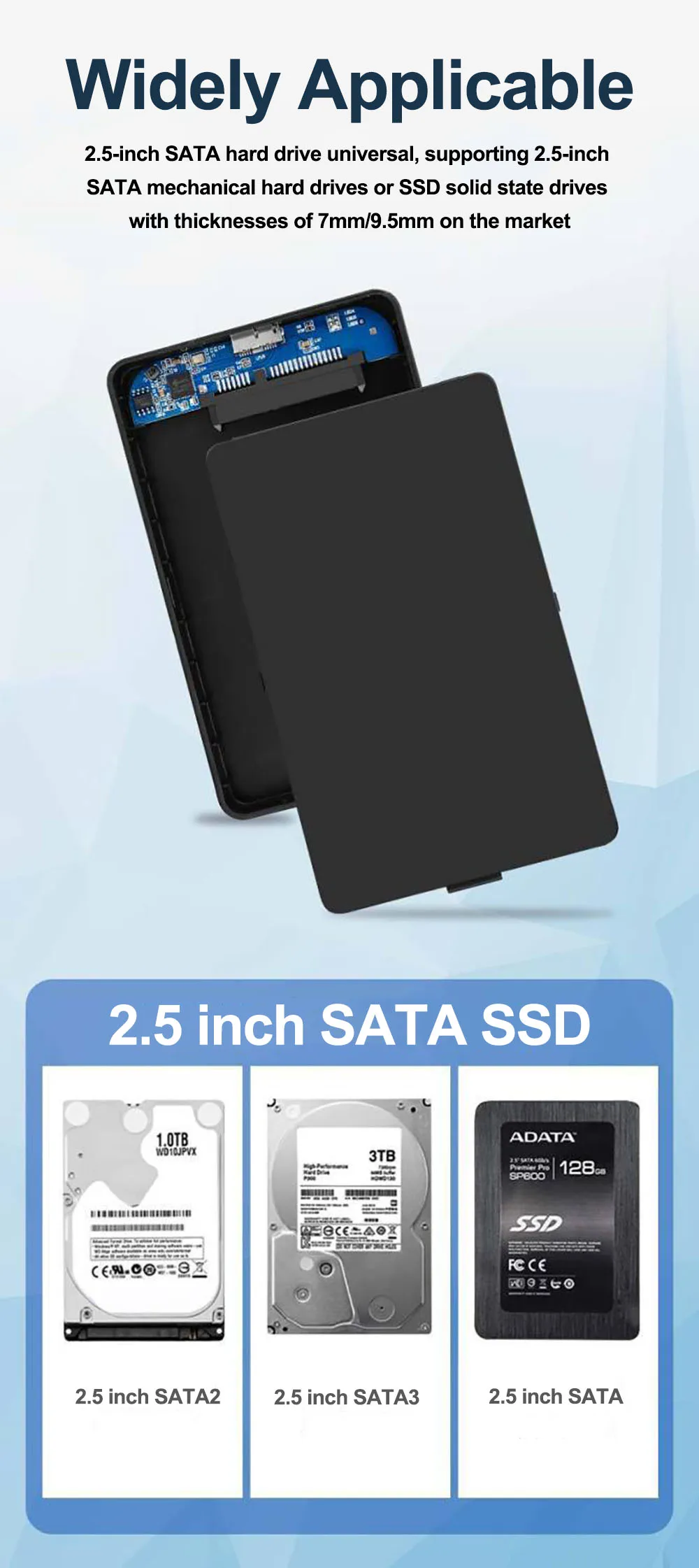 Plastic 2.5" SATA to USB 3.0 HDD Enclosure Mobile Hard Drive Disk Cases For SSD External Storage HDD Box USB Cable ABS