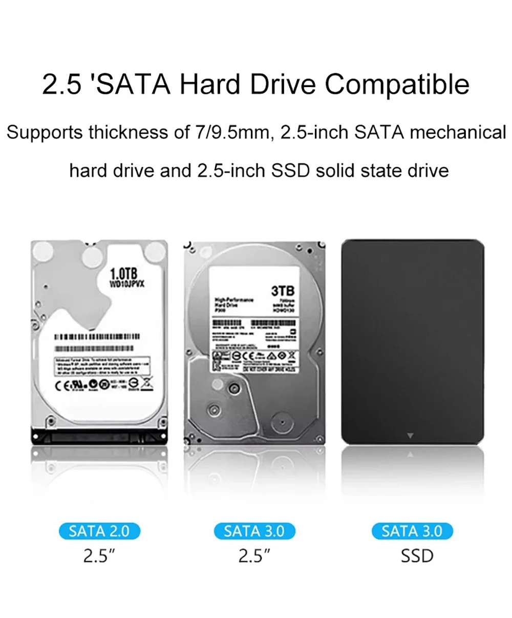 4.Compatibilidad versátil: la carcasa proporciona una amplia compatibilidad del sistema y una solución plug-and-play, compatible con unidades de 2,5 pulgadas y al mismo tiempo elimina la necesidad de controladores adicionales para simplificar la usabilidad entre los dispositivos.