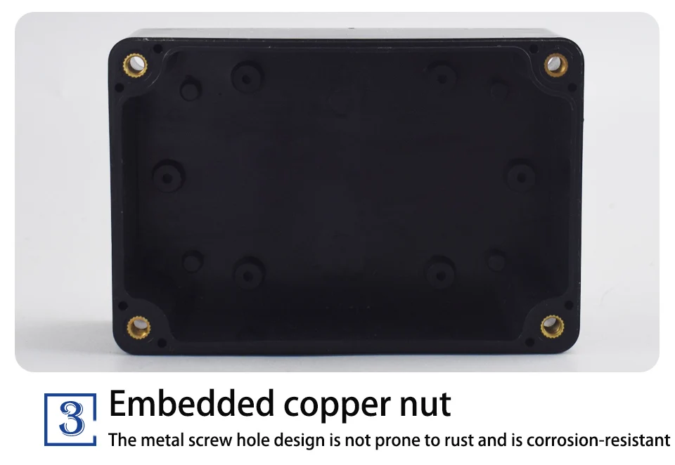 El acabado de la superficie es liso, el trabajo de moldeo está bien realizado y, aparte de una ligera curvatura en los laterales (quizás de 0,5 mm), todo es dimensionalmente preciso. Por alguna razón, el perno central de la caja de 160x110x90 mm es aproximadamente 3 mm más alto que los demás. Si planeas montar una placa base en el interior, tendrás que tener eso en cuenta. La junta se cortó aproximadamente 20 mm más corta, lo que requiere un sellador adicional para garantizar la impermeabilidad.