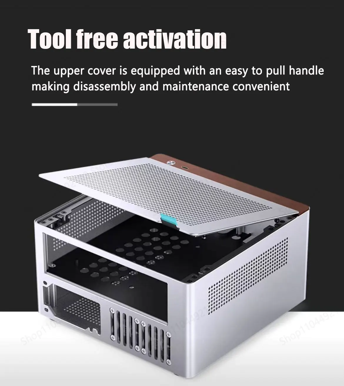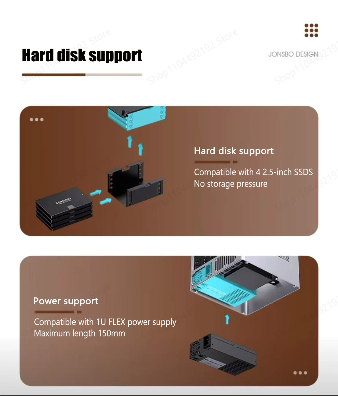 La caja está muy bien diseñada, con las medidas más que razonables y con la capacidad de instalar 4 discos SATA. aunque creo que podrían haber sido más si hubieran optimizado un poco el espacio en esa parte, quizá 6 discos SATA SSD habría entrado perfectamente.
