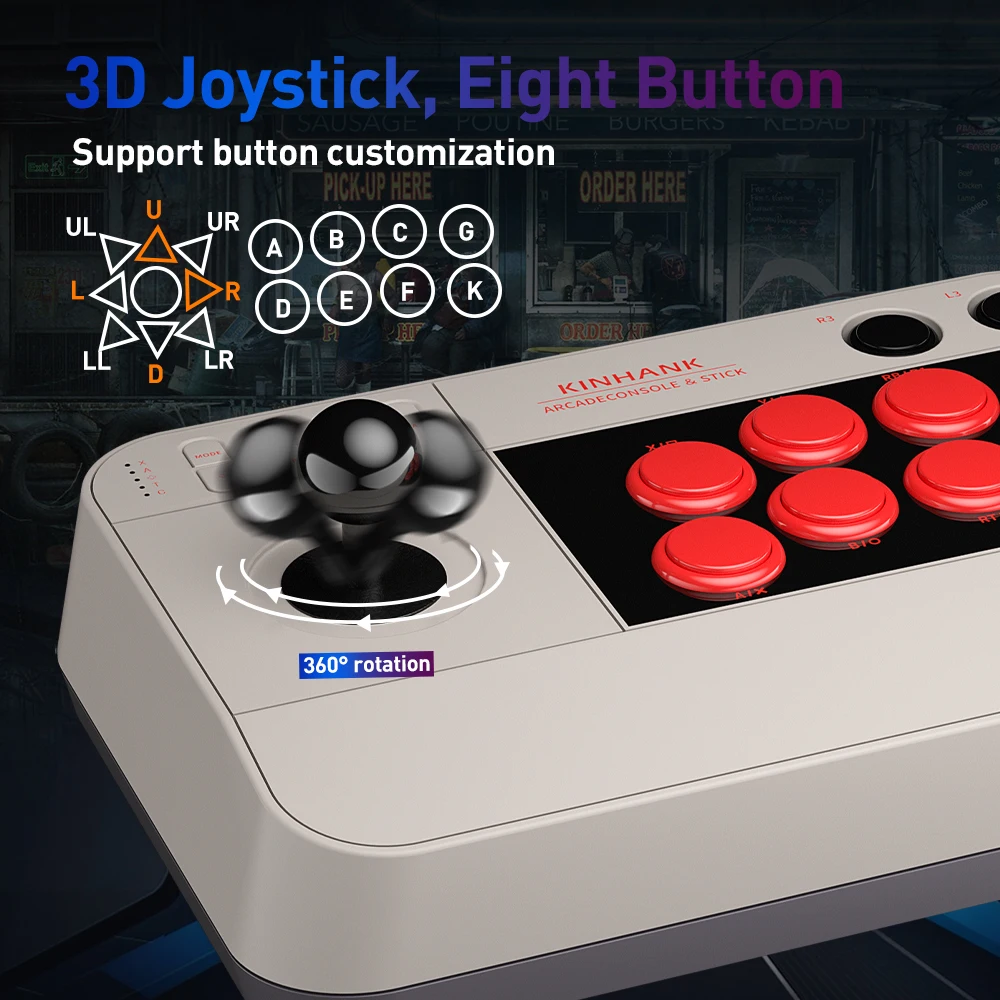 Abandonamos el diseño original de 6 teclas y lo cambiamos a un diseño de 8 teclas, agregando teclas L3 y R3, posiciones de teclas más completas e integración de múltiples modos, solo para permitirle experimentar juegos en más plataformas, no por problemas de compatibilidad.