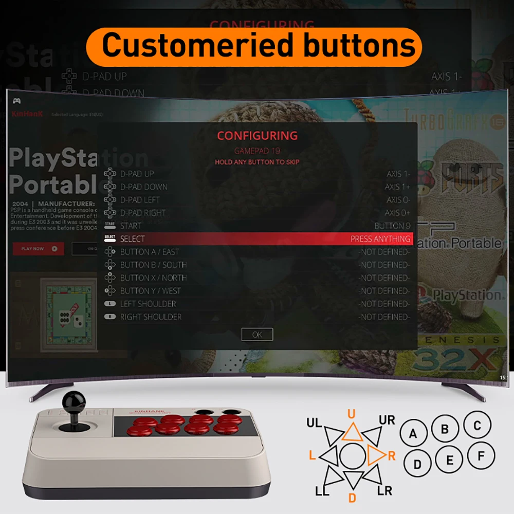La caja arcade de la súper consola ya no se limita a su propio sistema y admite el acceso a Switch, PC, PS3, Raspberry Pi, Android y otros dispositivos, identificación inteligente, conmutación inteligente, y juego multiplataforma.
