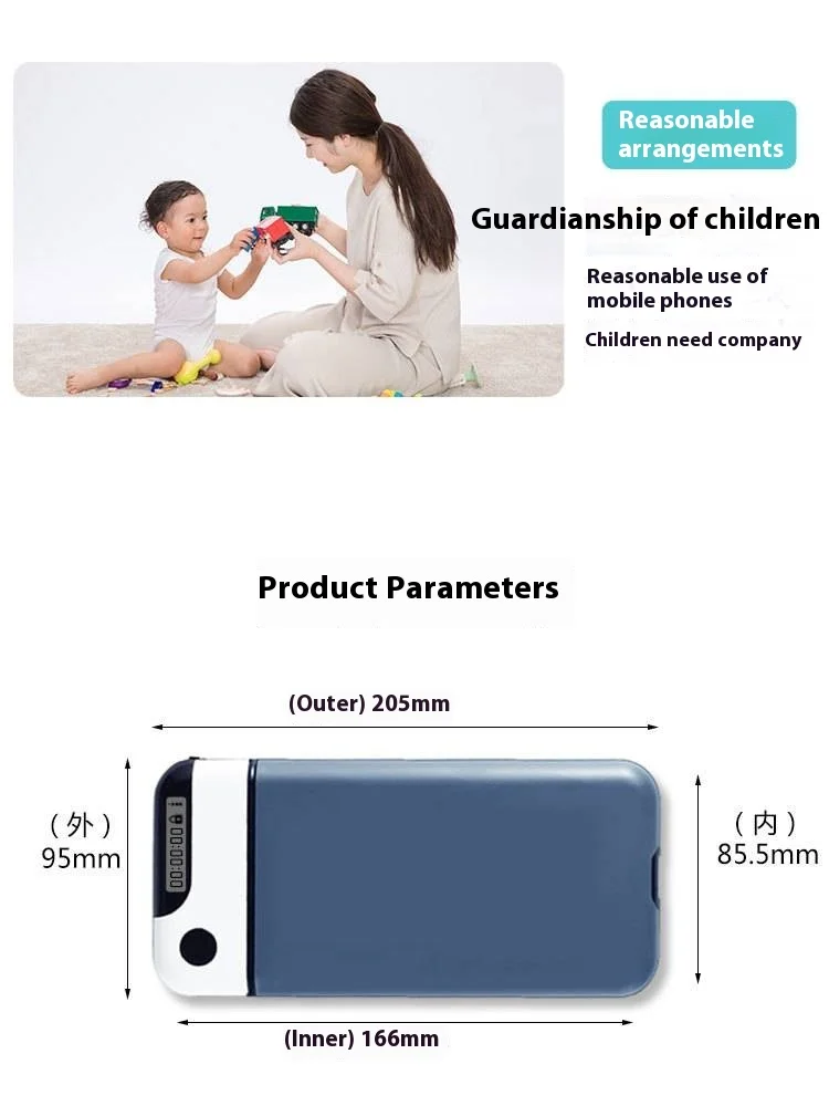 Caja Keepin, caja de sincronización con cerradura para teléfono móvil, temporizador portátil, autorregulación, caja de seguridad, límite de uso del teléfono móvilCaracterísticas del producto:1. CAMBIO INMEDIATO: Si los hábitos de tu teléfono móvil interfieren con tu salud, relaciones y responsabilidades, es posible que sea el momento de hacer algunos cambios.Los estudios han demostrado que las fundas para cables de carga del teléfono con temporizadores pueden aumentar efectivamente la cantidad de tiempo que se aleja de su teléfono o pasar más tiempo haciendo algo significativo con su familia, amigos y centrándose en el trabajo, el estudio y la vida.