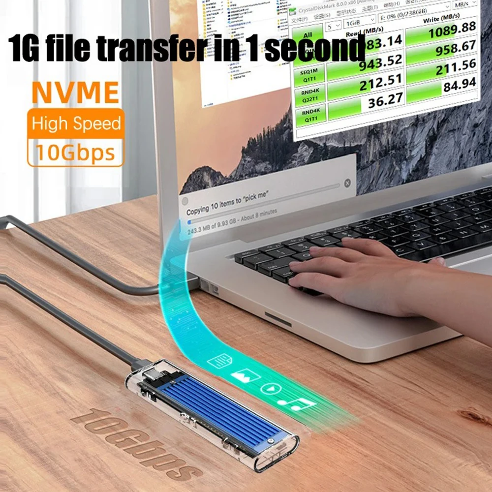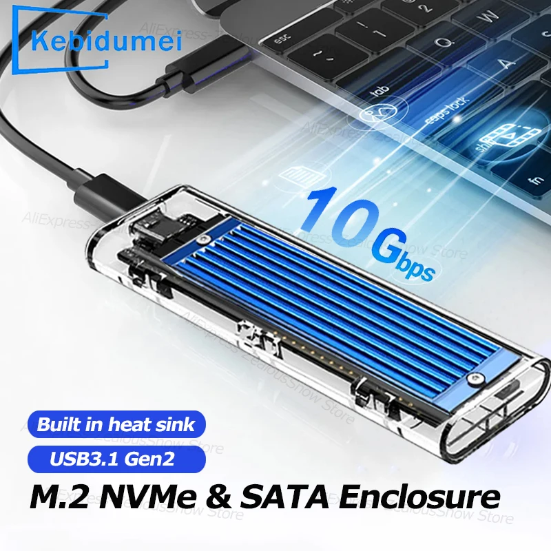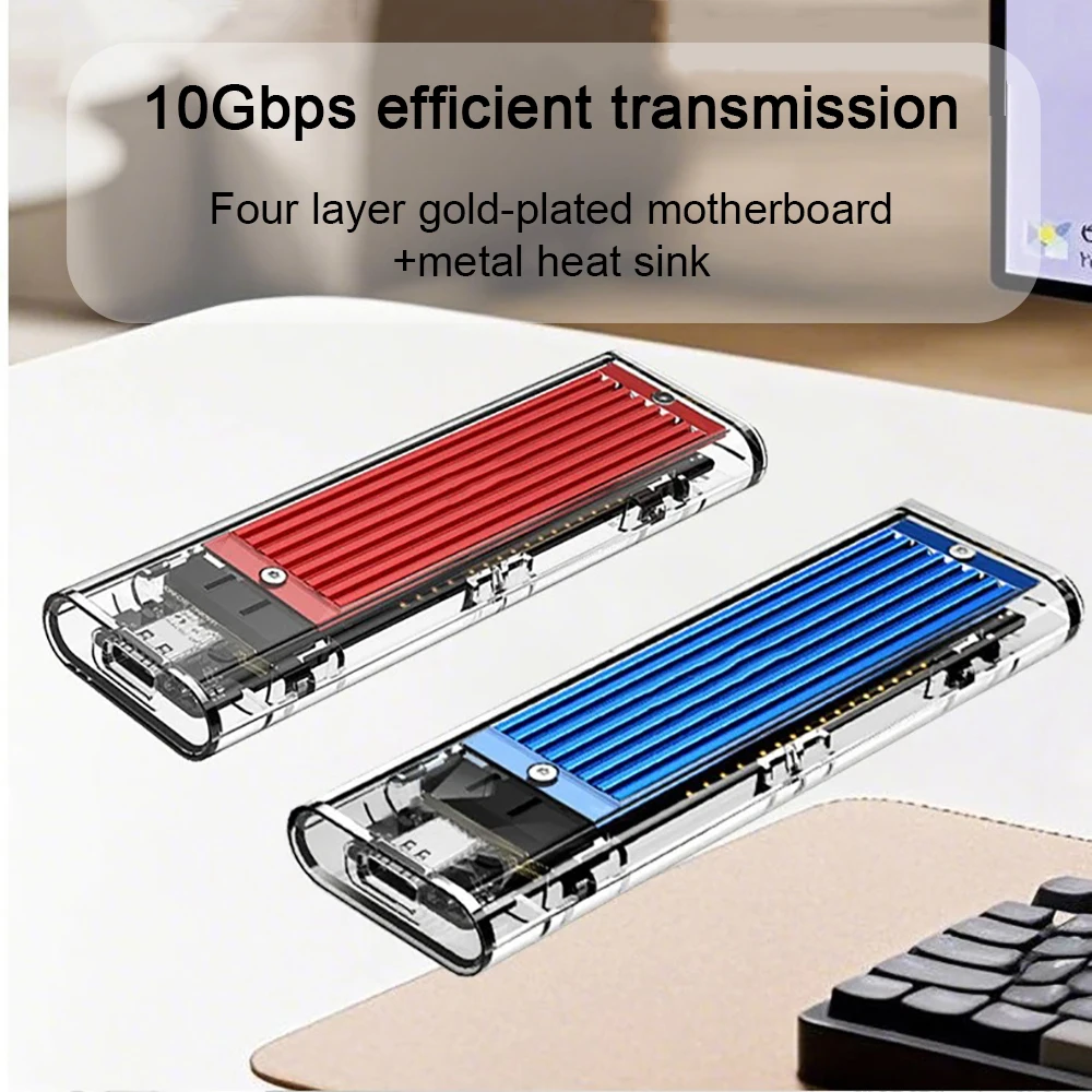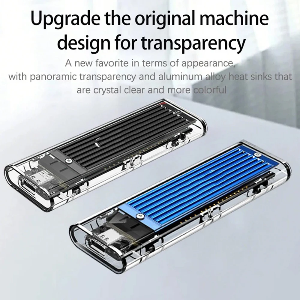 Comprar Caja M2 SSD NVME SATA SSD, carcasa transparente de 10Gbps, caja M.2 a USB tipo C con disipador de calor, adaptador externo, compatible con embellecedor UASP