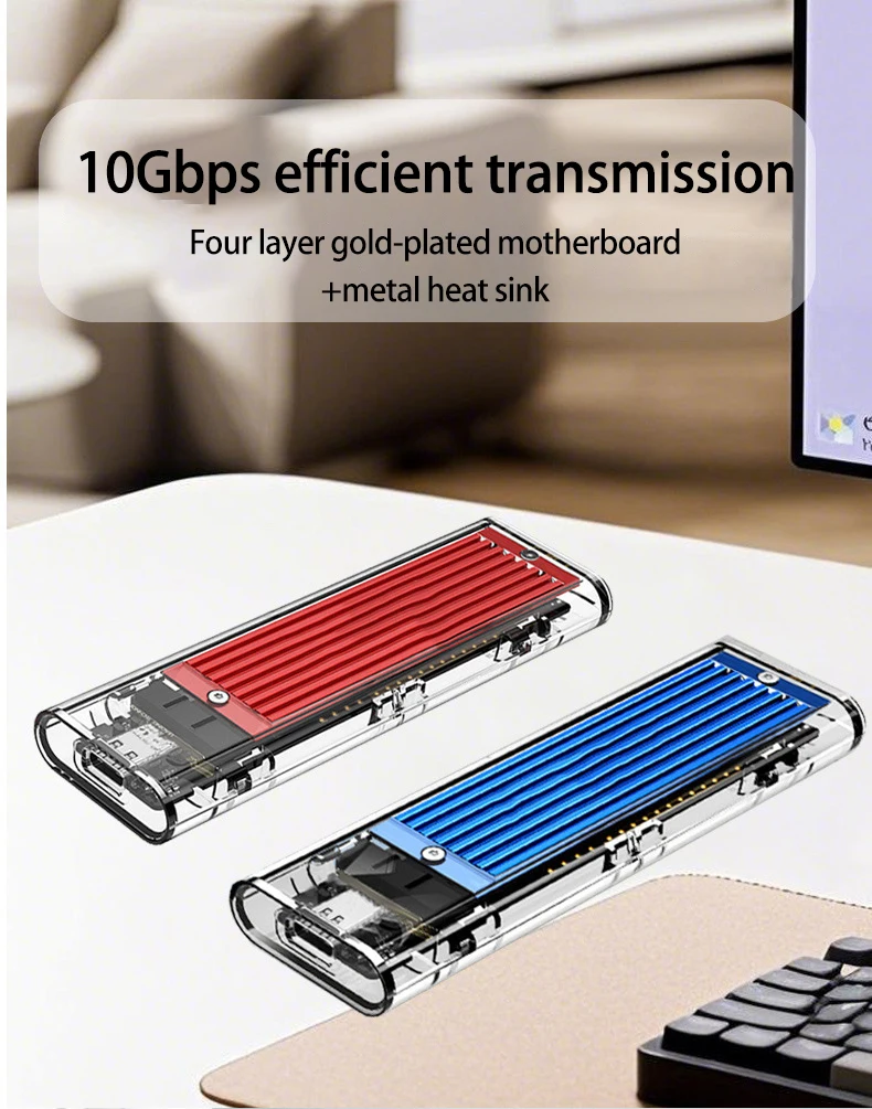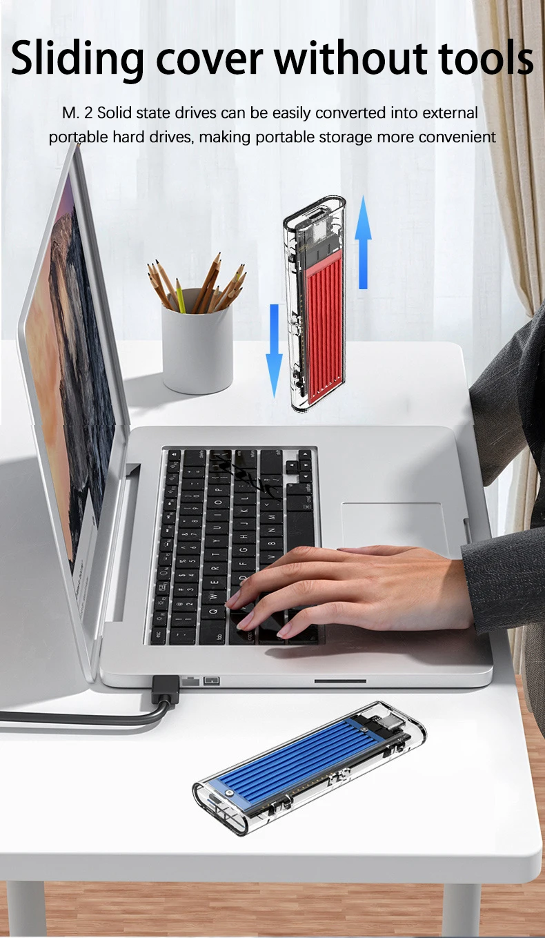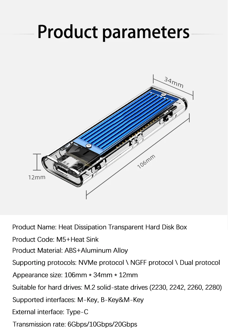 Comprar Caja M2 SSD NVME SATA SSD, carcasa transparente de 10Gbps, caja M.2 a USB tipo C con disipador de calor, adaptador externo, compatible con embellecedor UASP