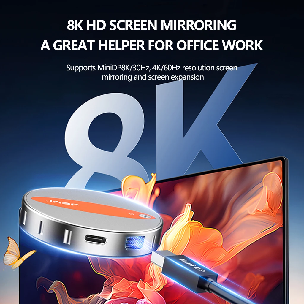 Duplicación de pantalla HD de 8K: admite duplicación y expansión de pantalla con resolución Mini DP de 8K/30Hz, 4K/60Hz;