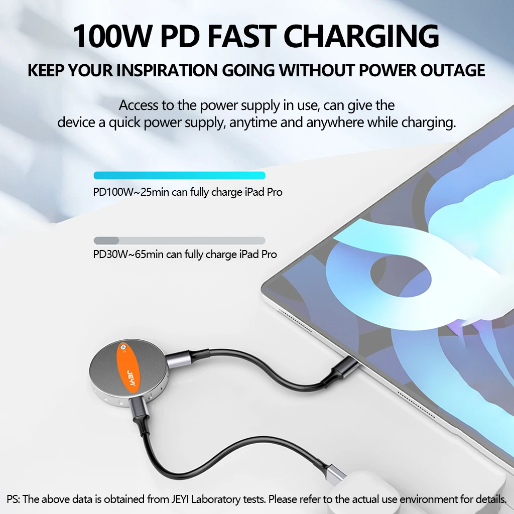 Carga rápida PD de 100 W: la fuente de alimentación se puede conectar durante el uso, proporcionando carga rápida para dispositivos y carga mientras se usa en cualquier momento y en cualquier lugar.