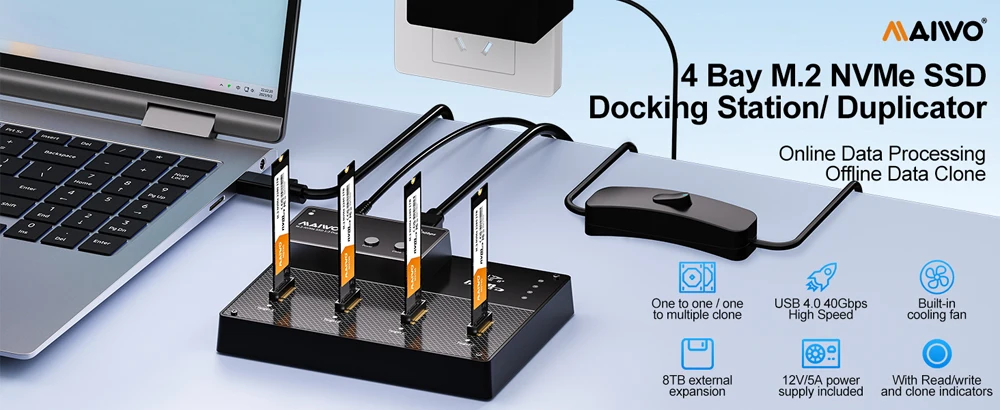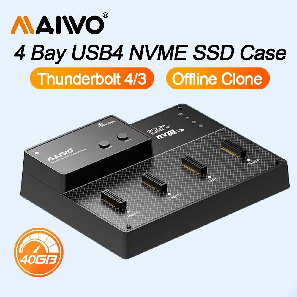Comprar Caja MAIWO Thunderbolt 4/3 M.2 NVMe SSD de 4 bahías con clon fuera de línea 40Gbps USB4 caja de disco duro NVME SSD externo para ordenador portátil