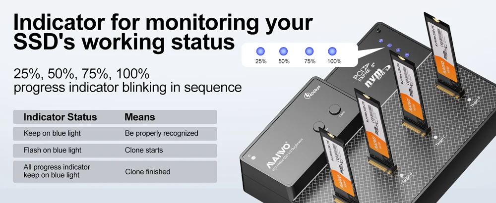【Fácil instalación】Fácil instalación y extracción de SSD sin necesidad de herramientas adicionales.Muestra la actividad y el estado de la unidad de cada compartimento SSD.Clona rápidamente unidades para respaldo o migración.