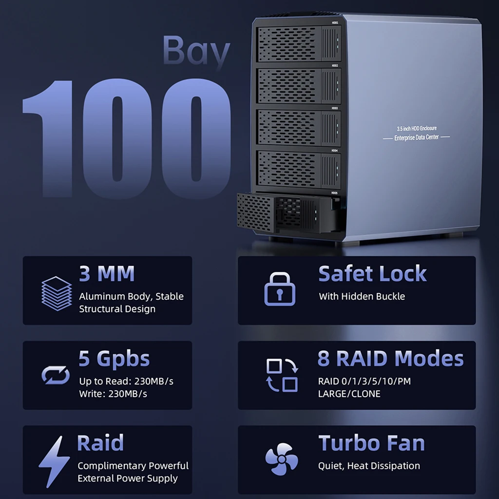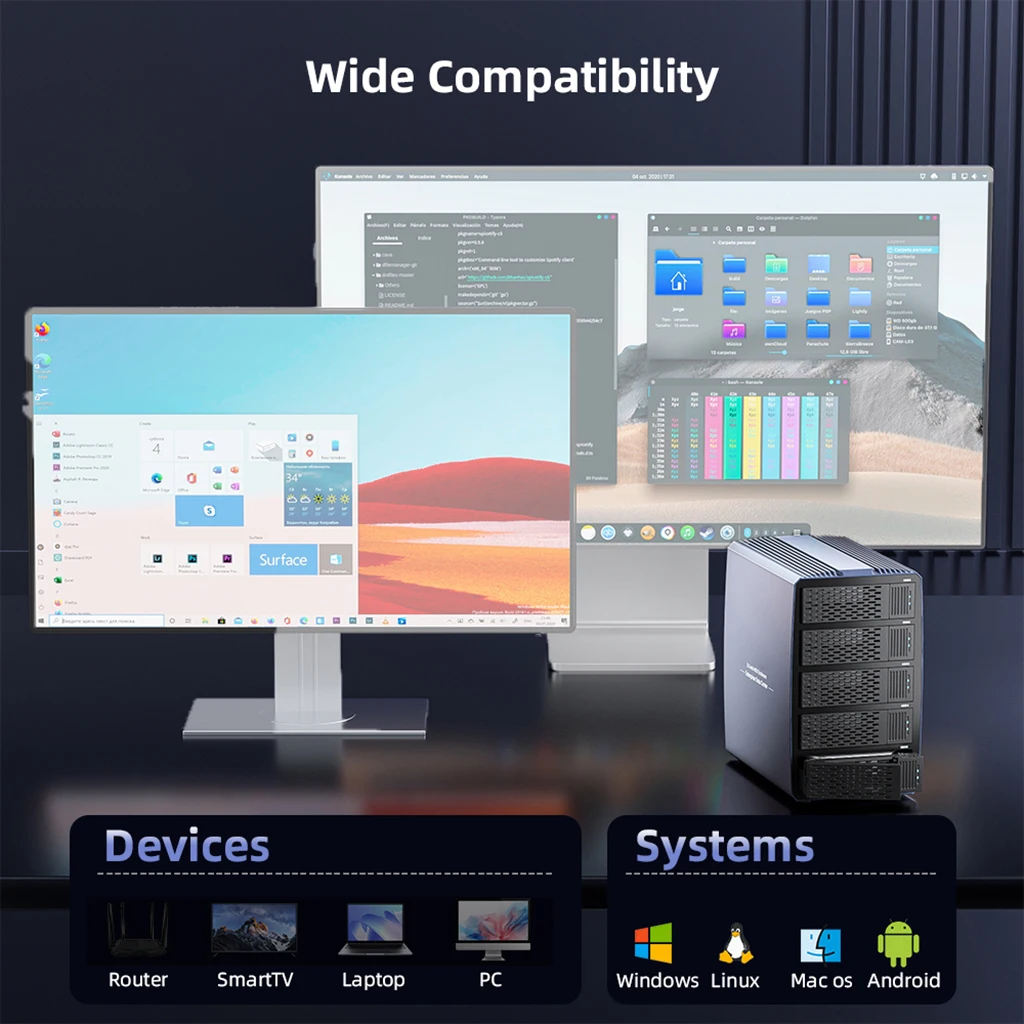 Caja de matriz de disco duro externo de 5 bahías, carcasa de HDD de 3,5/2,5 pulgadas, USB 3,0 a Sata3.0, 5gbps, compatible con 8 modos Raid para carcasa de seguridad de datos